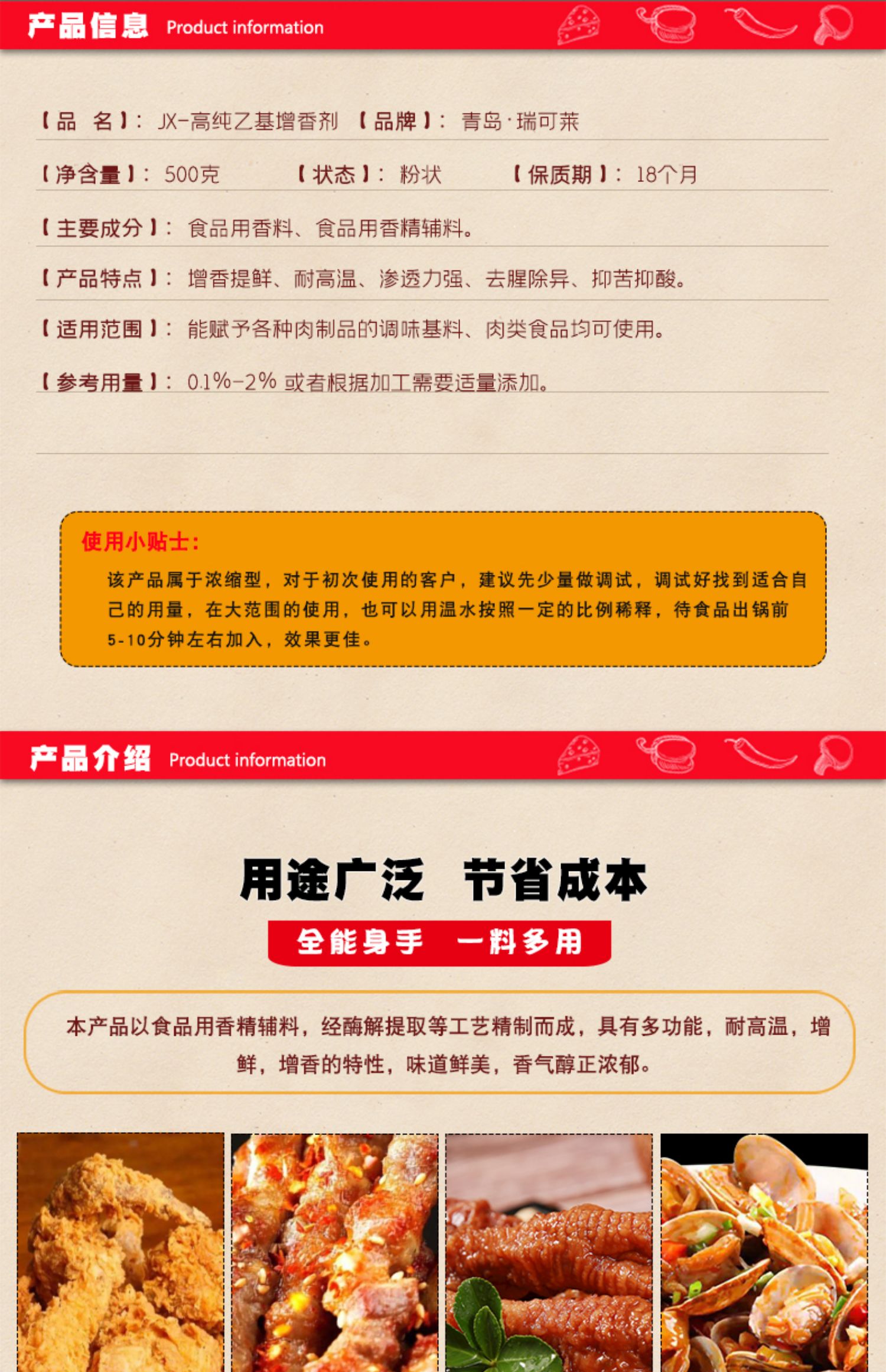 瑞可萊焦香JX8001高純乙基增香劑 鹵肉熟食增香去腥正品包郵