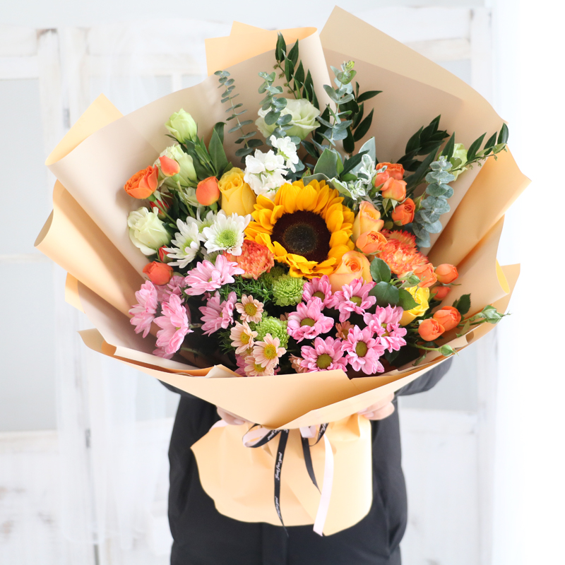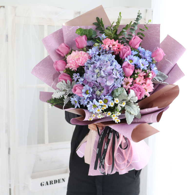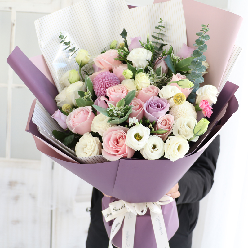 混搭粉玫瑰花束花店郁金香北京鮮花