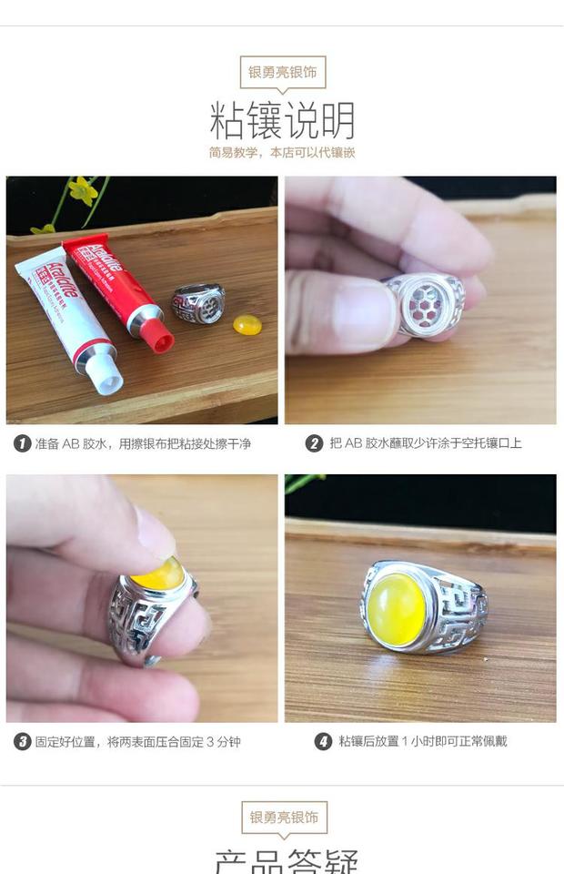 s925空托手工鑲嵌翡翠蜜蠟純銀戒指