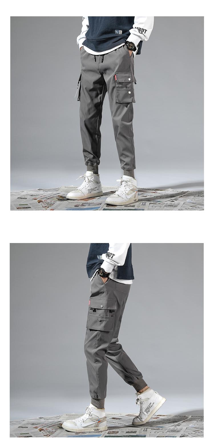 機能風多口袋束腳工裝褲男潮牌春夏薄款ins韓版潮流運動休閑褲子