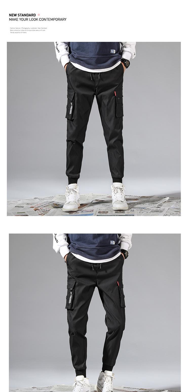 男潮牌修身顯瘦束腳褲韓版工裝褲