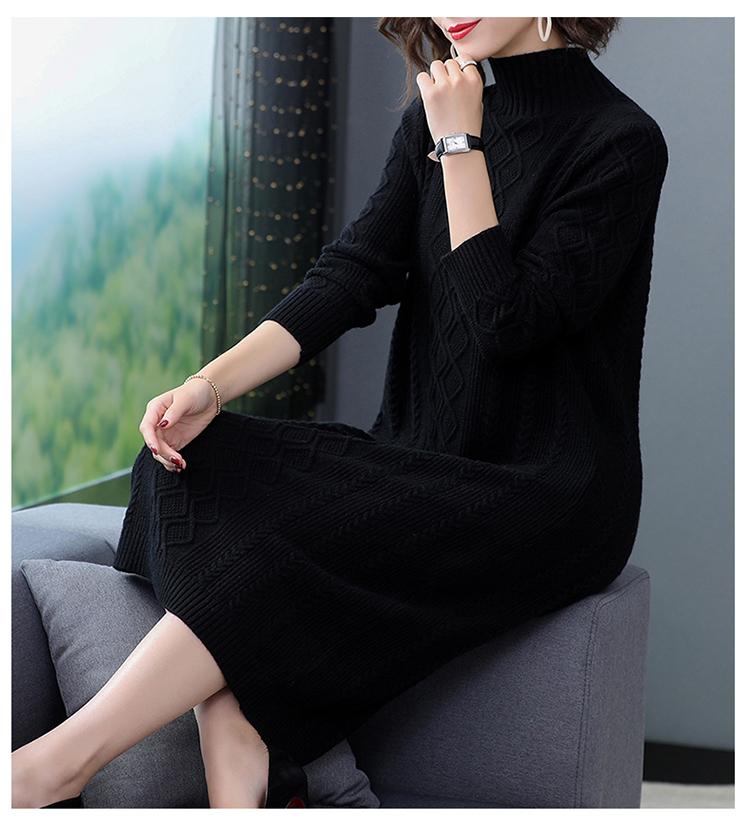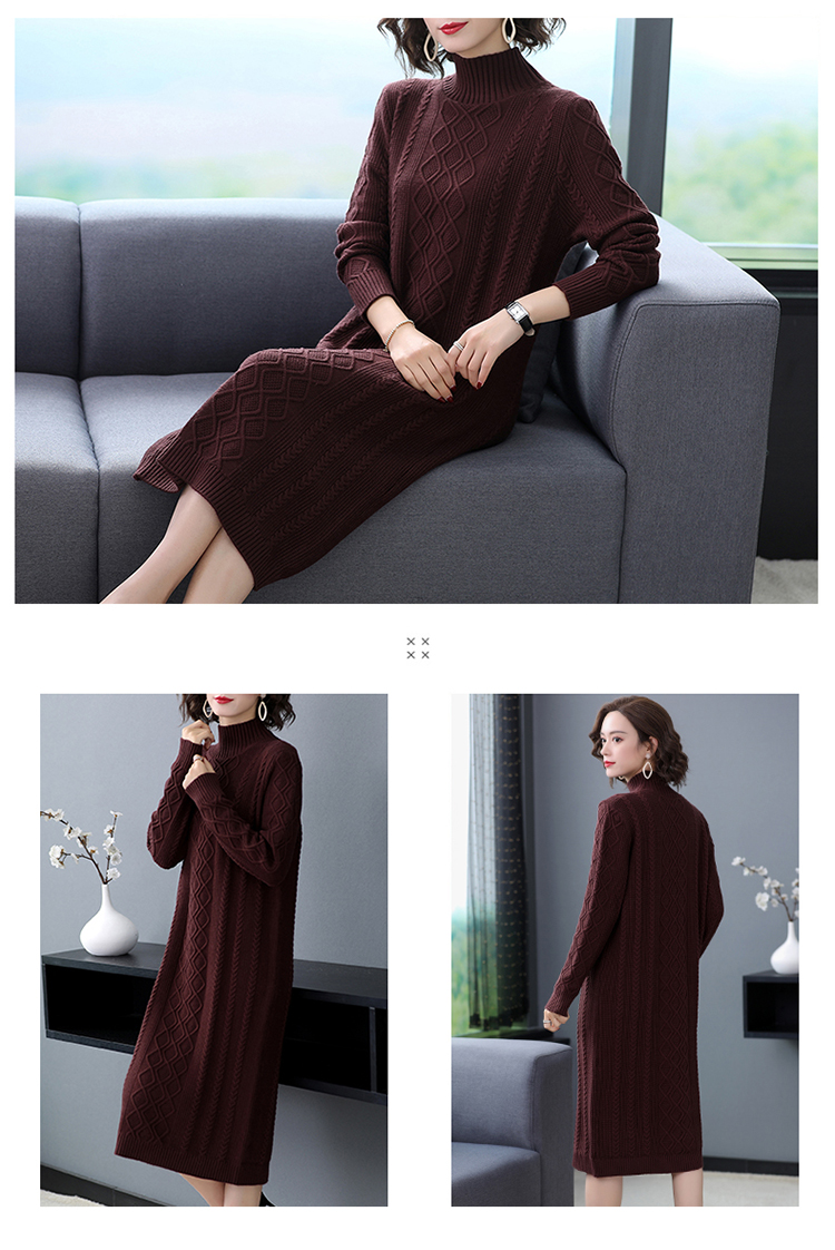 羊毛裙連衣裙女秋冬2022新款半高領毛衣女寬松長款毛衣裙過膝加厚