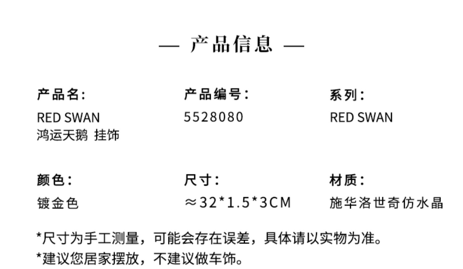 施華洛世奇 RED SWAN 鴻運天鵝掛件裝飾品 轉運 好運 禮物