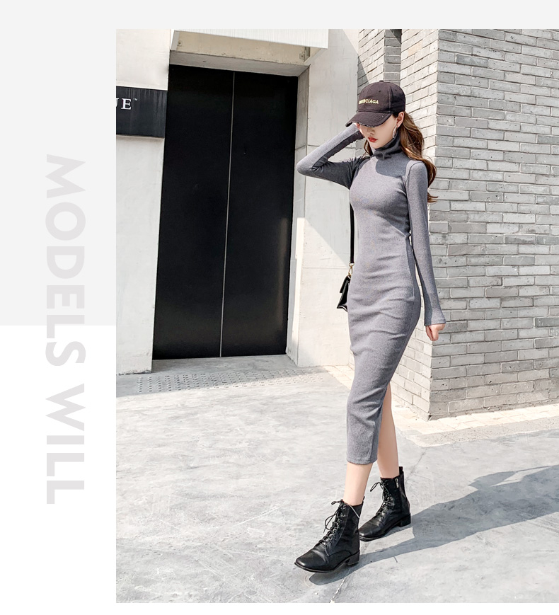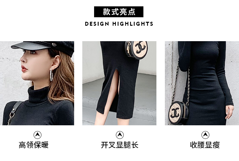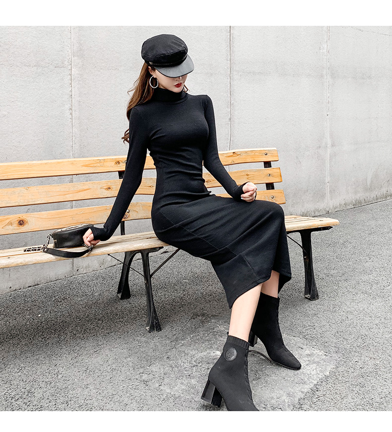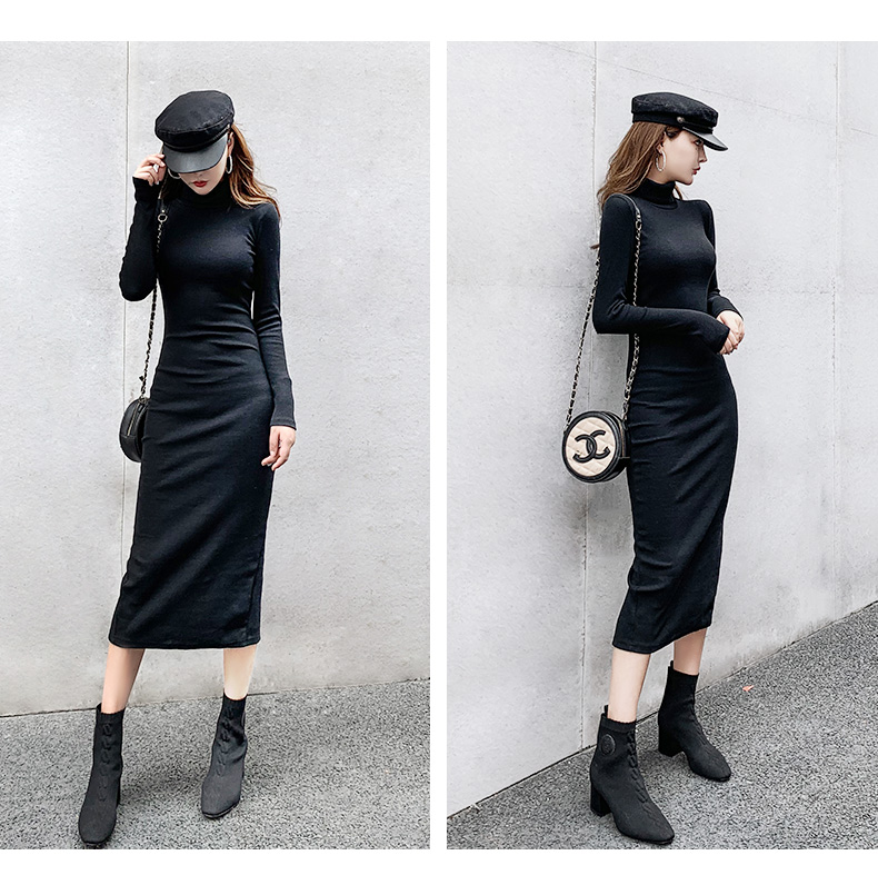 高領連衣裙女春秋2023年新款女裝氣質修身打底裙內搭包臀長裙子