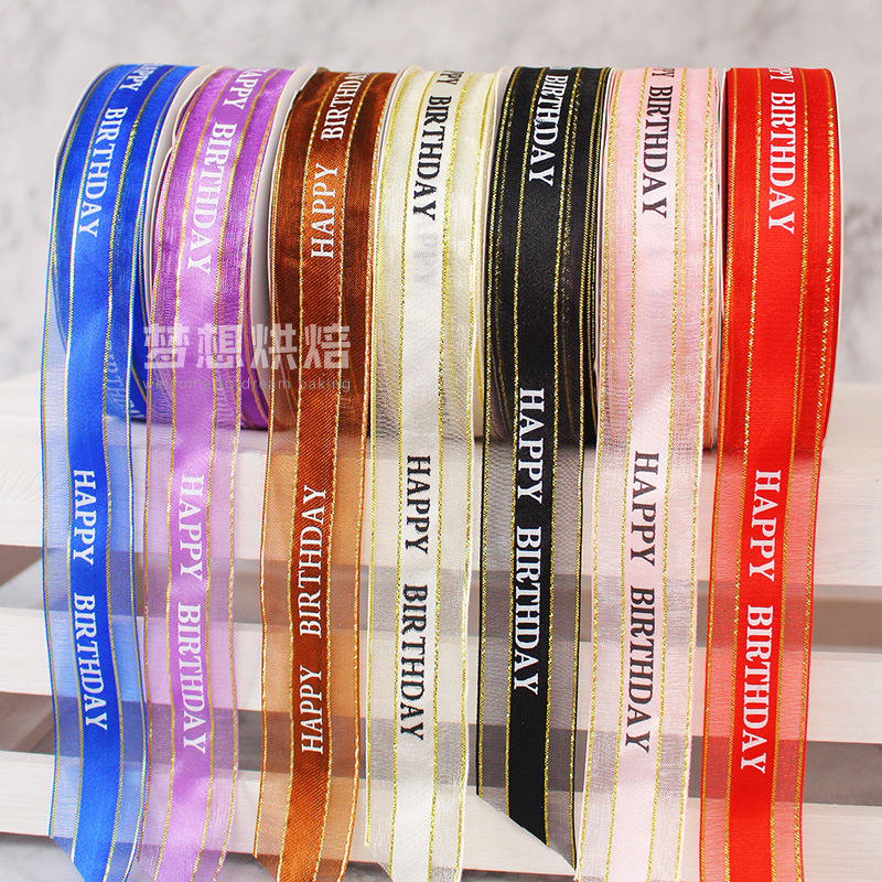 90米印字絲帶生日快樂蛋糕禮包圍邊
