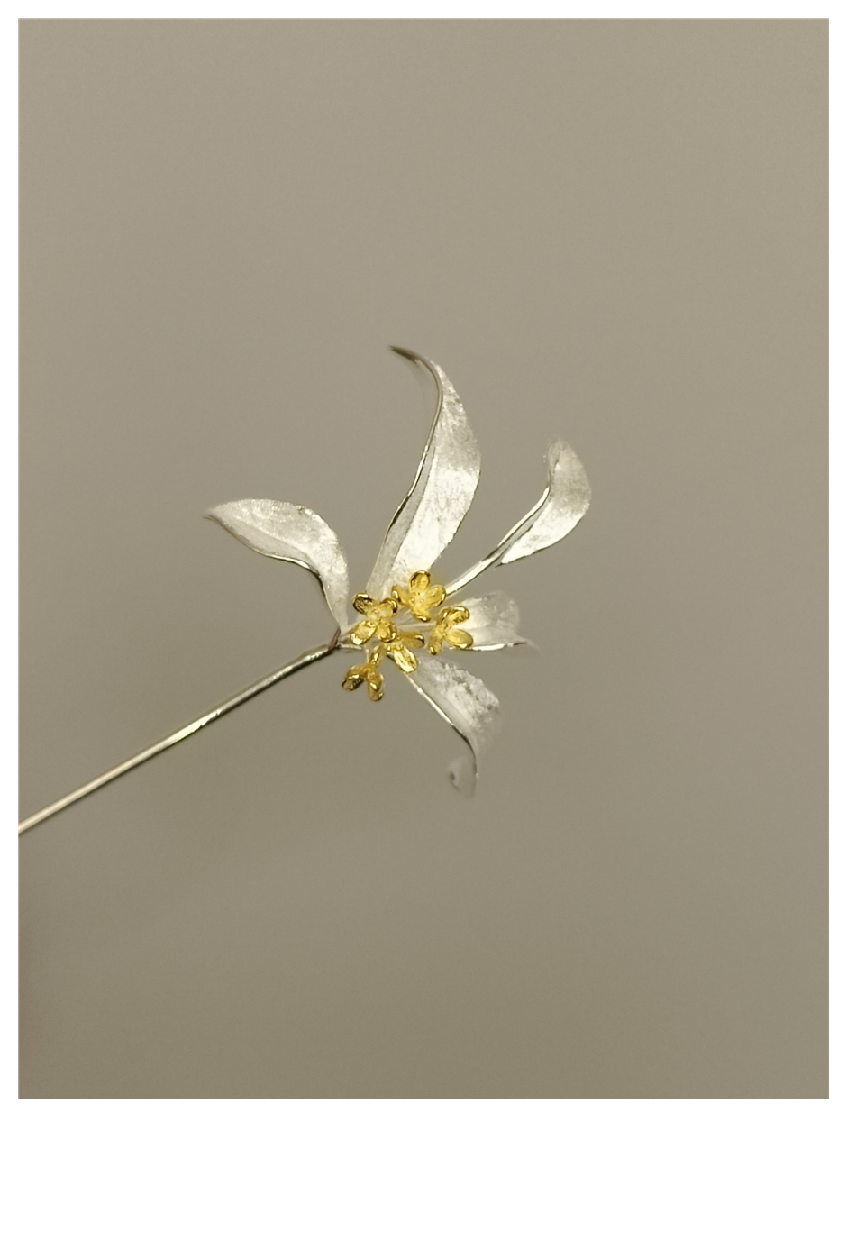梵靈原創多葉桂花枝胸針S925純金銀國風小眾設計高級感輕奢復古