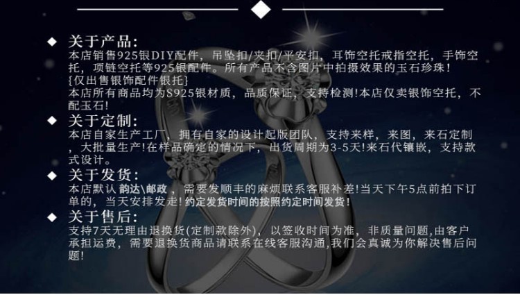 s925純銀戒指空托男款diy松石蜜蠟