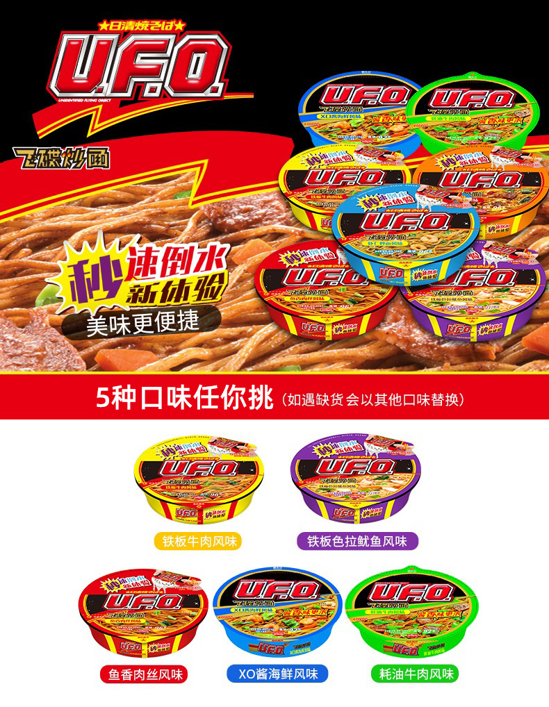 日清UFO飛碟炒面124g*12碗夜宵方便面拉面干拌面泡面碗面速食食品