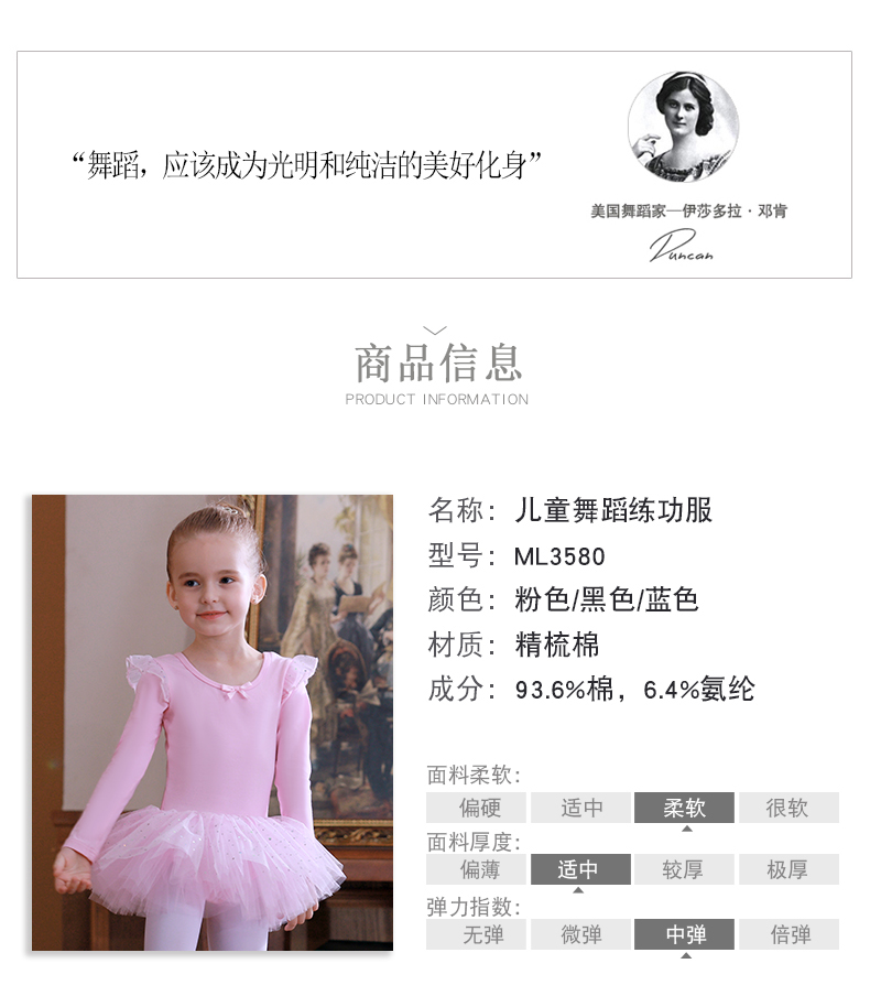 女童芭蕾舞裙秋冬季長袖跳舞裙
