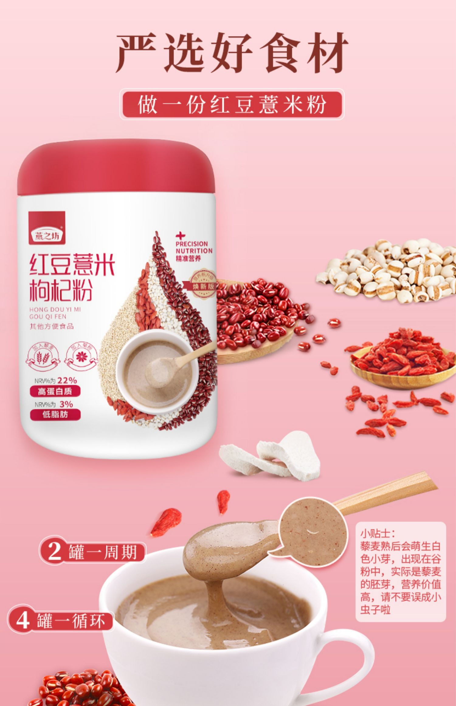 【燕之坊紅豆薏米枸杞粉500g】五谷薏米仁高蛋白低脂代餐沖飲早餐