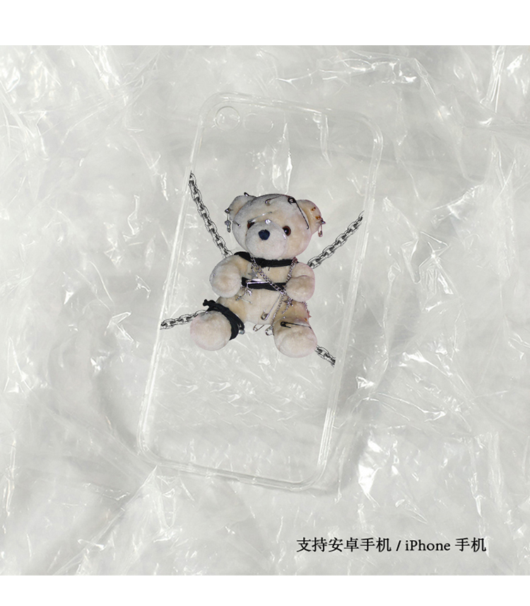 蘋果13冷淡風喪系列鏈條小熊適用iphone12promax11p全包軟x手機殼