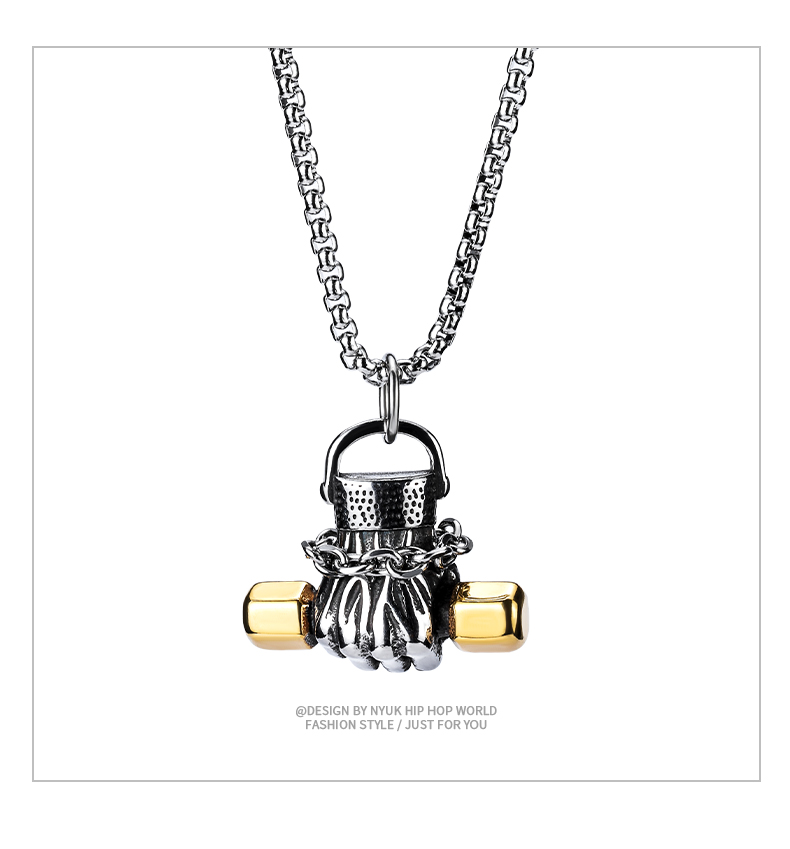 NYUK 潮男力量拳頭手握啞鈴項鏈 歐美潮牌Hiphop鈦鋼學生吊墜飾品