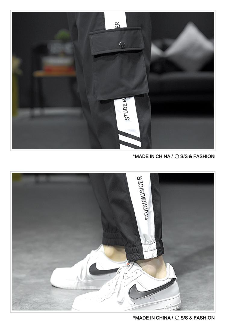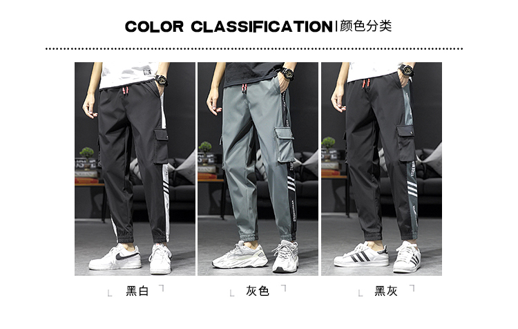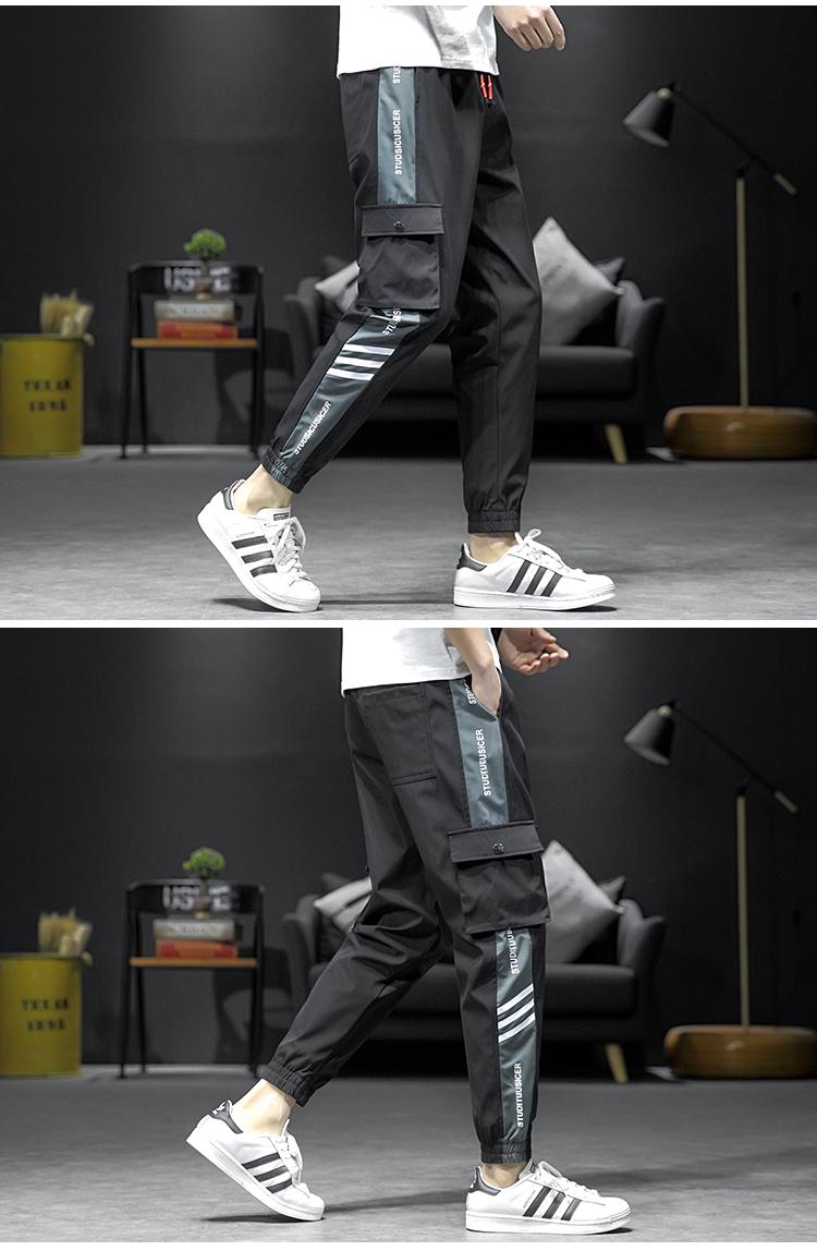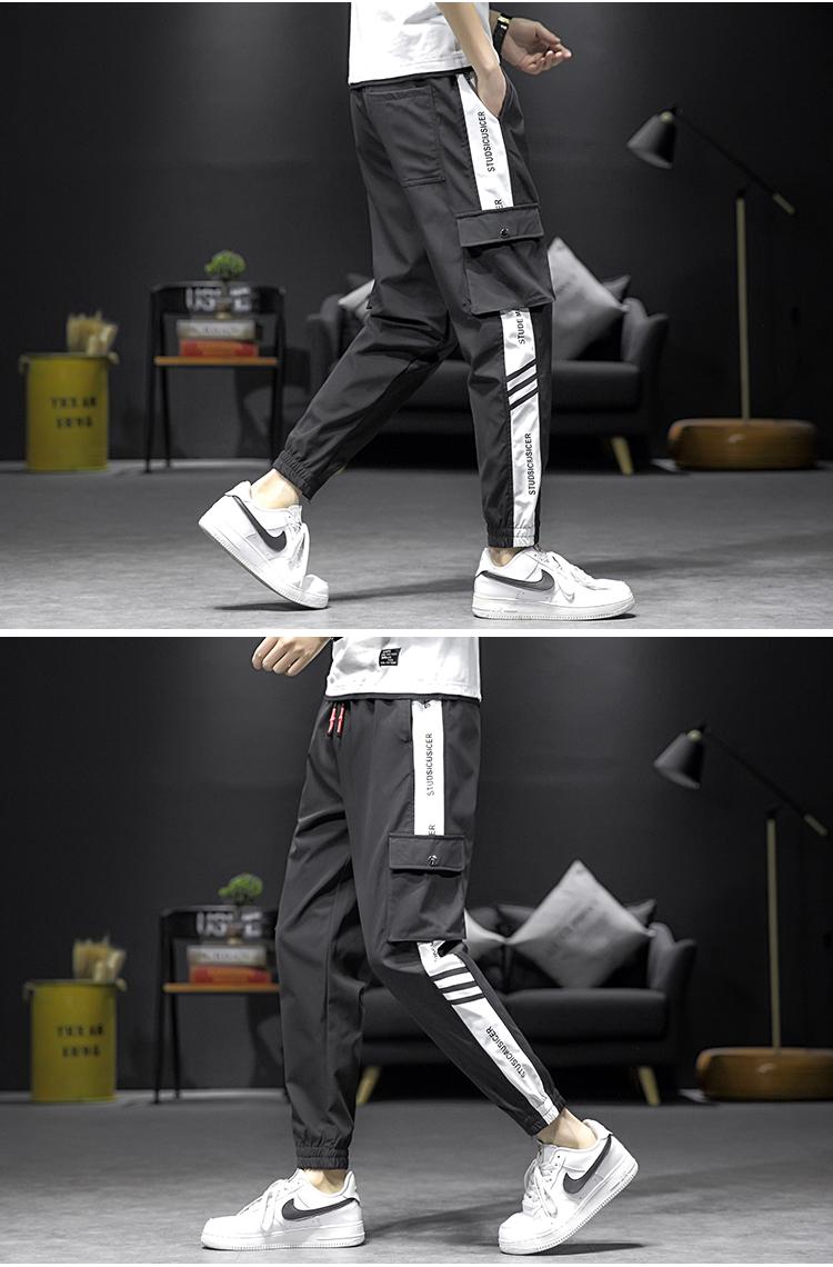 2020春夏季男士休閑褲ins個性穿搭運動褲潮流九分束腳工裝長褲子