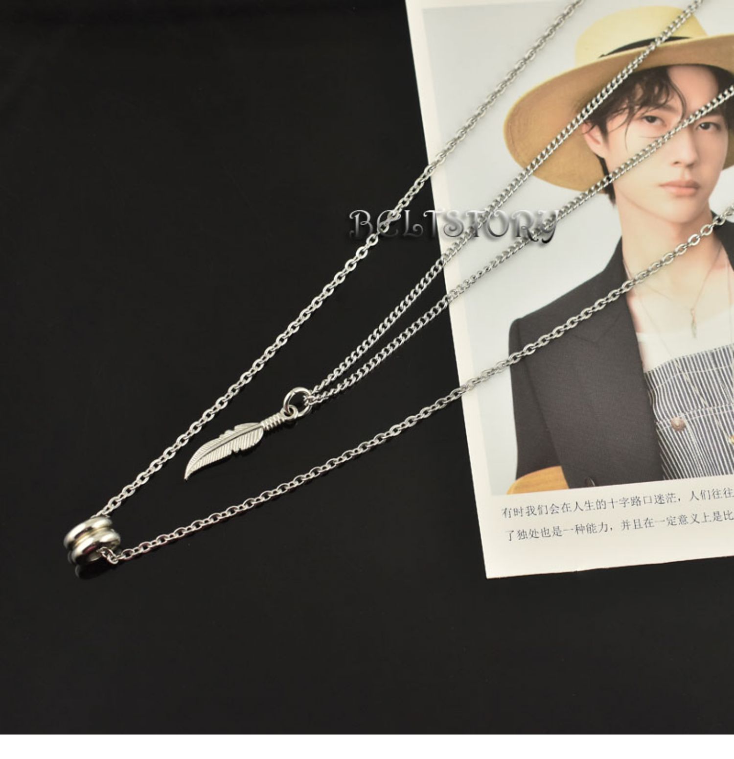 王一博同款項鏈男新款疊戴羽毛圈圈鎖骨鏈潮人個性百搭嘻哈項鏈女
