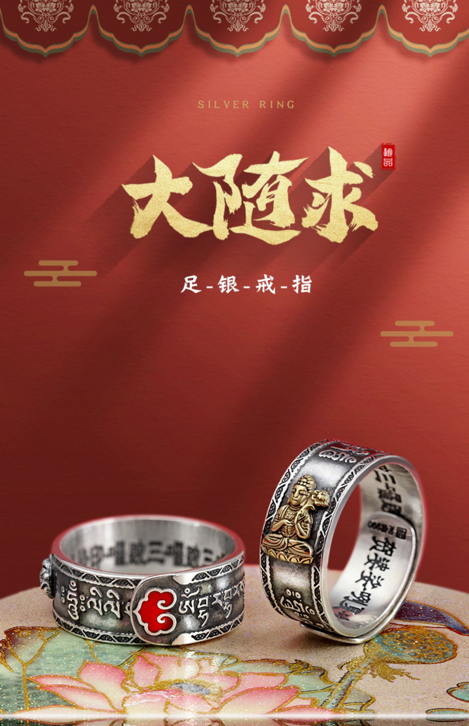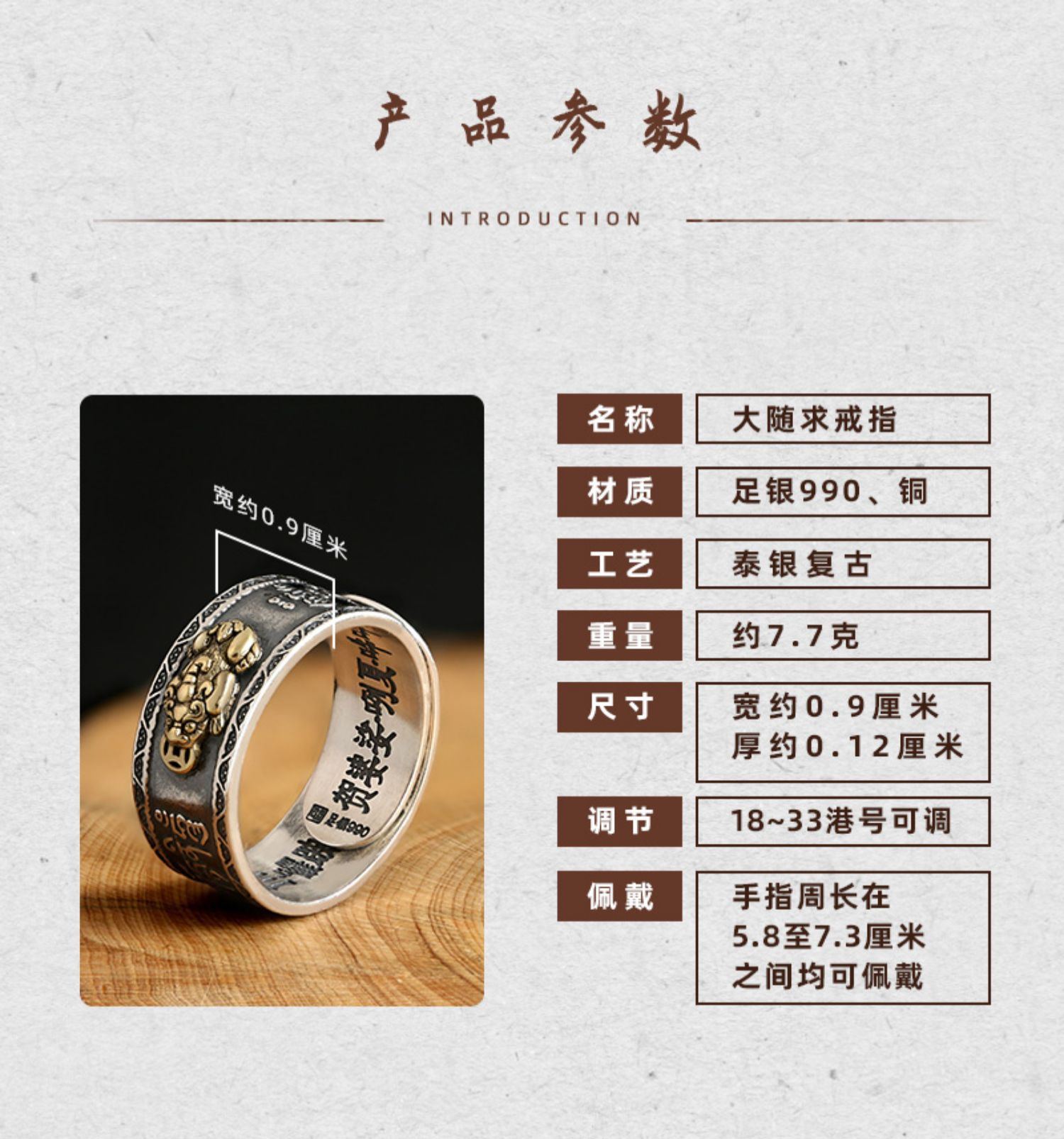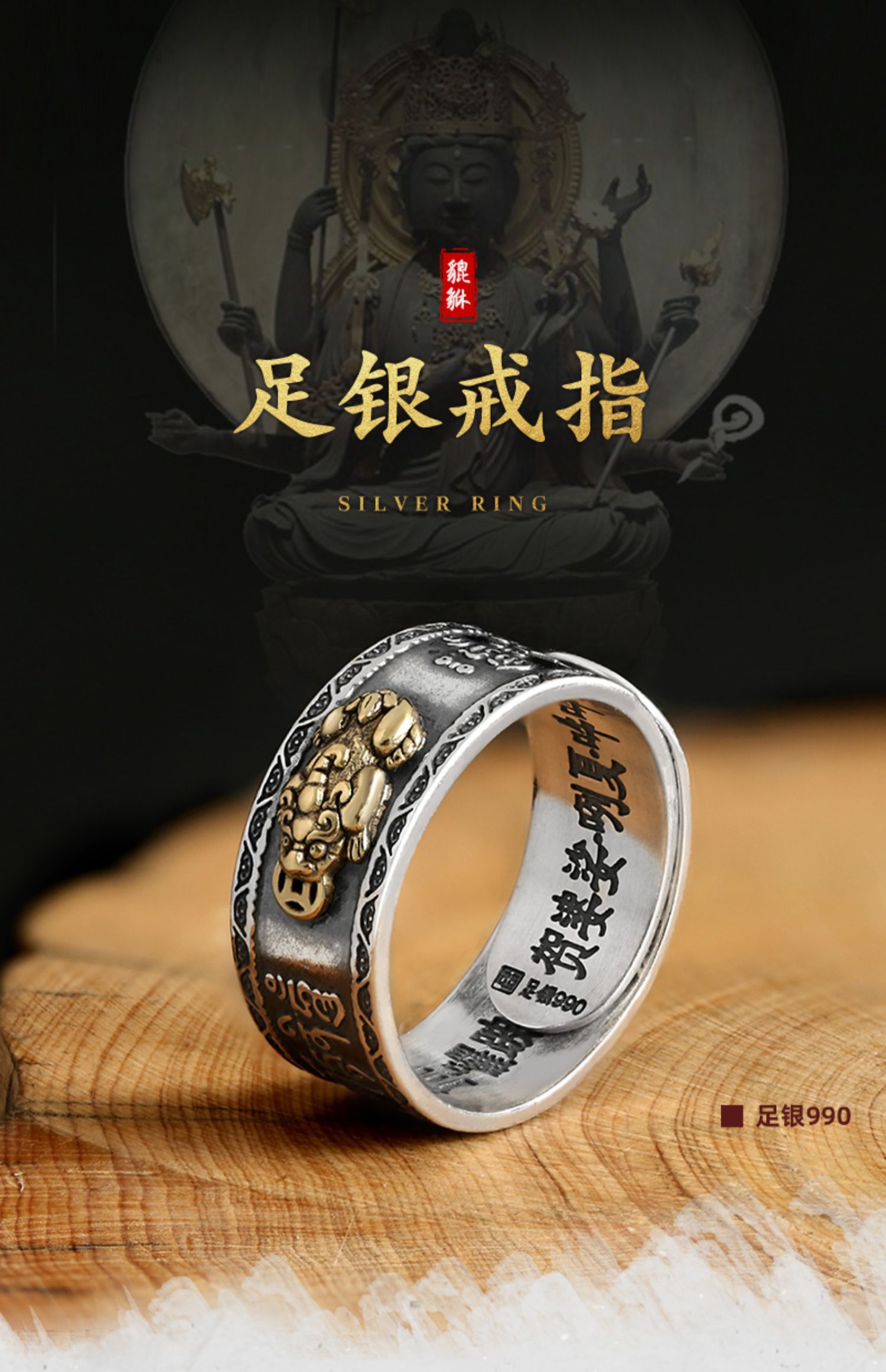 原創小眾設計99足銀大隨求戒指男士純銀貔貅國潮鼠年潮男個性女