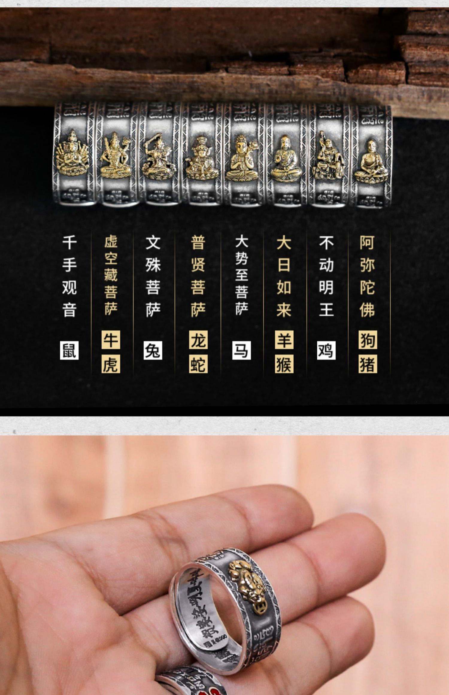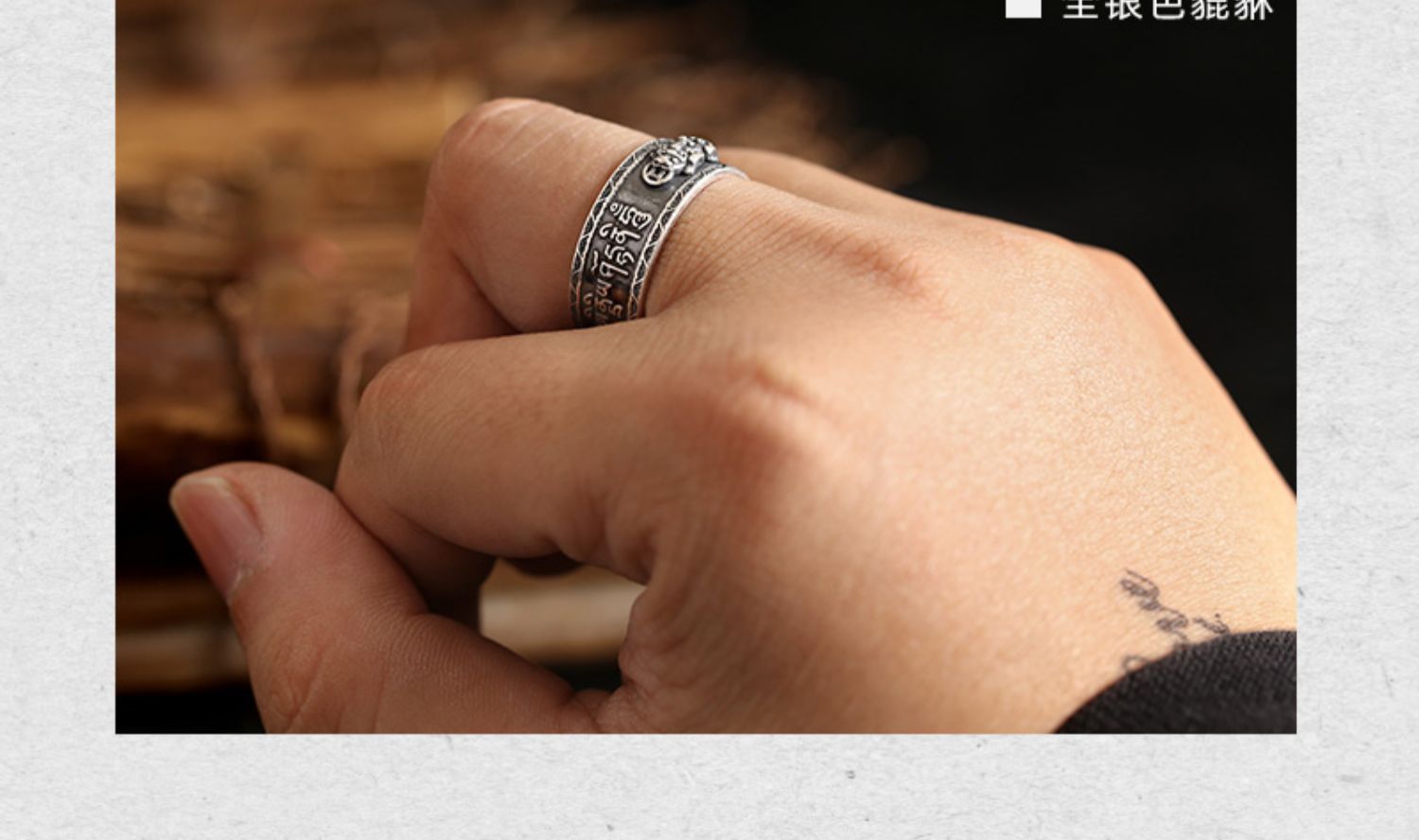 個性霸氣純銀男士六字真言轉動戒指