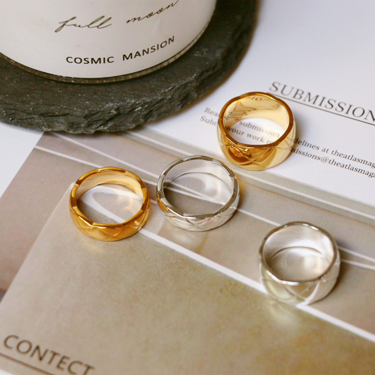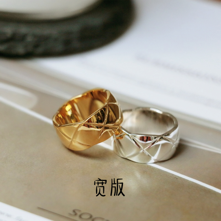 實心素圈小香風菱格紋戒指女18k金素圈女個性不掉色港風ins風