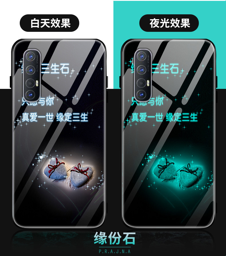 opporeno3夜光玻璃reno3pro手機殼