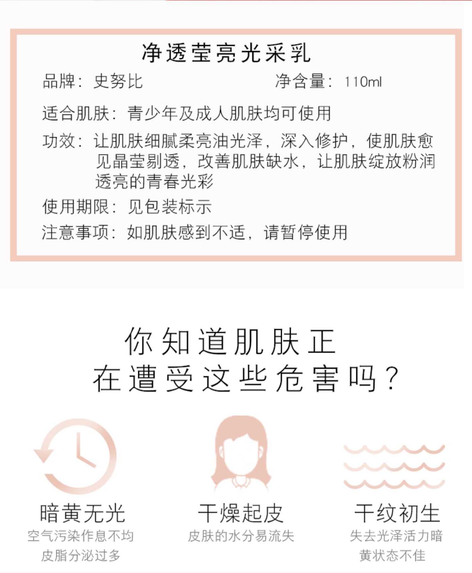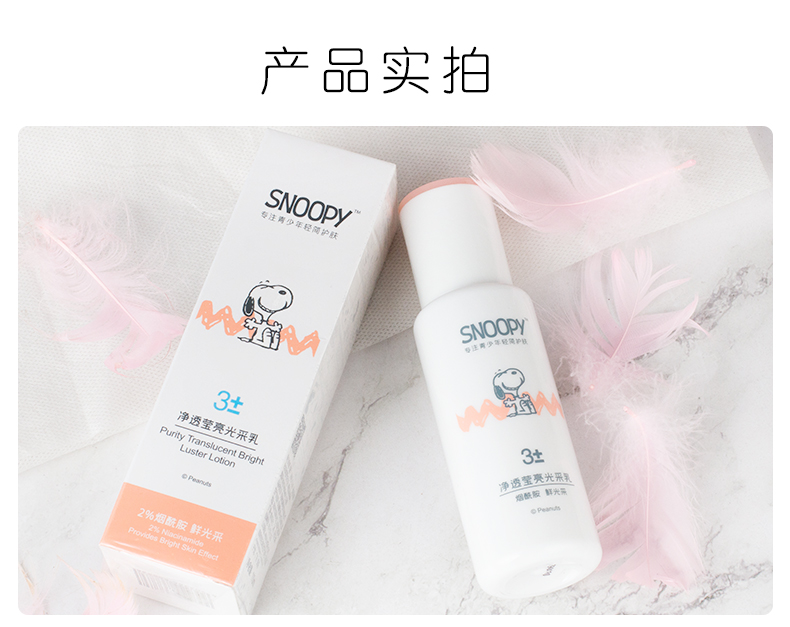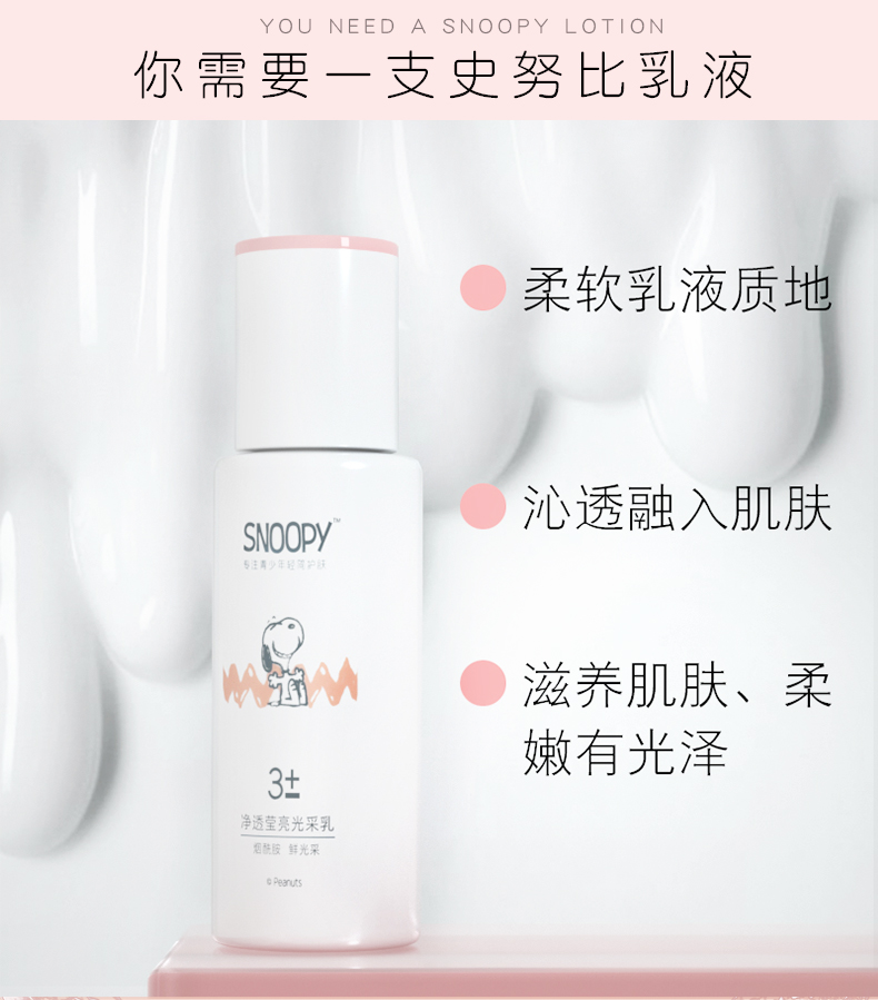 史努比凈透瑩亮乳液保濕補水滋潤嫩白青少年小高初中學生兒童護膚