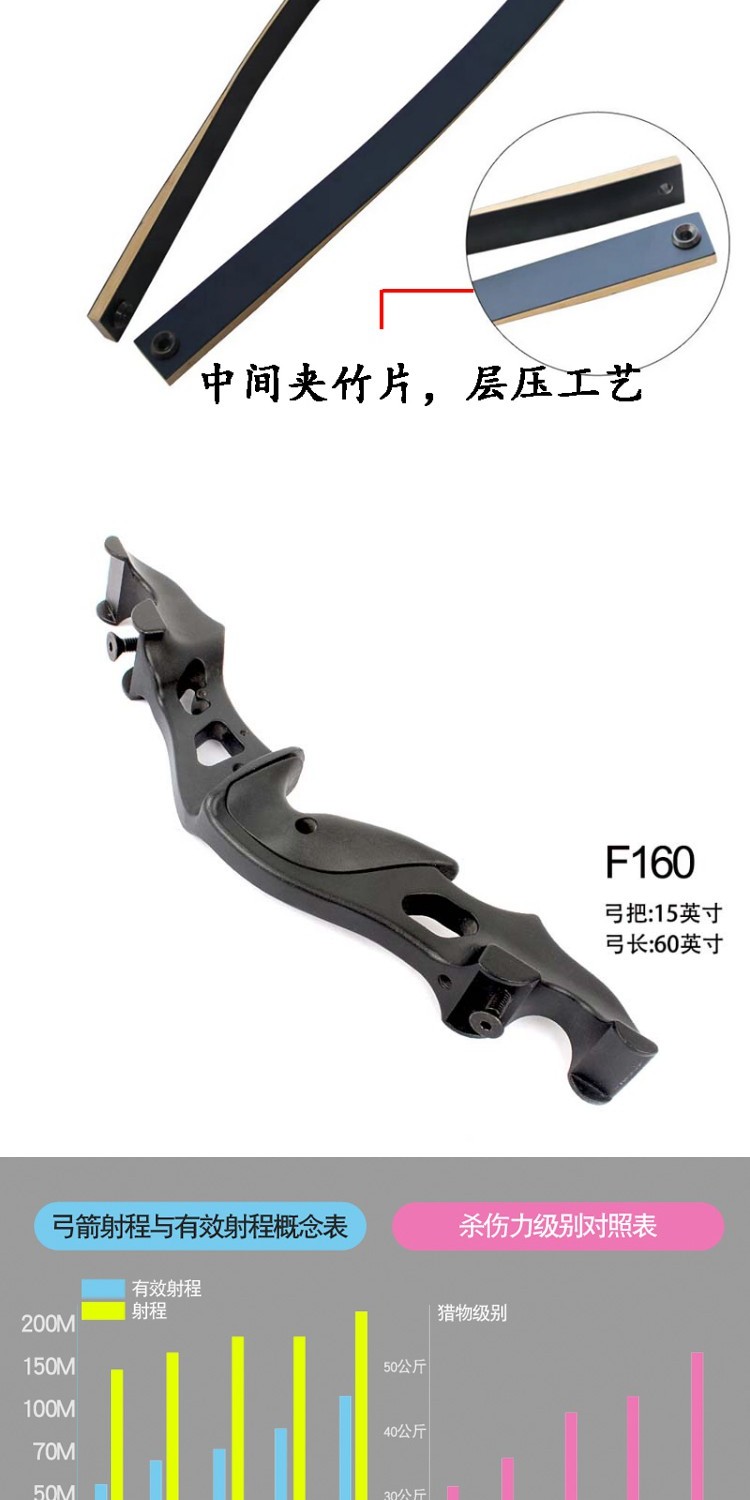 新品美獵弓箭傳統設計反曲弓分體戶外射擊層壓弓片競技比賽運動