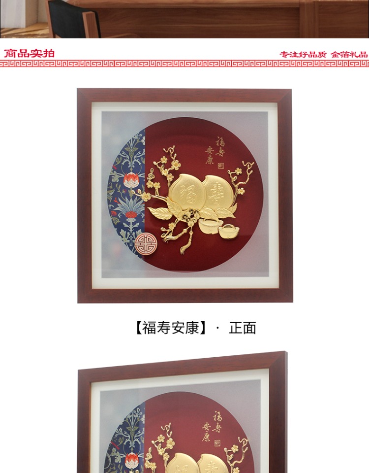 金箔畫擺件送父母親老人賀壽壽桃