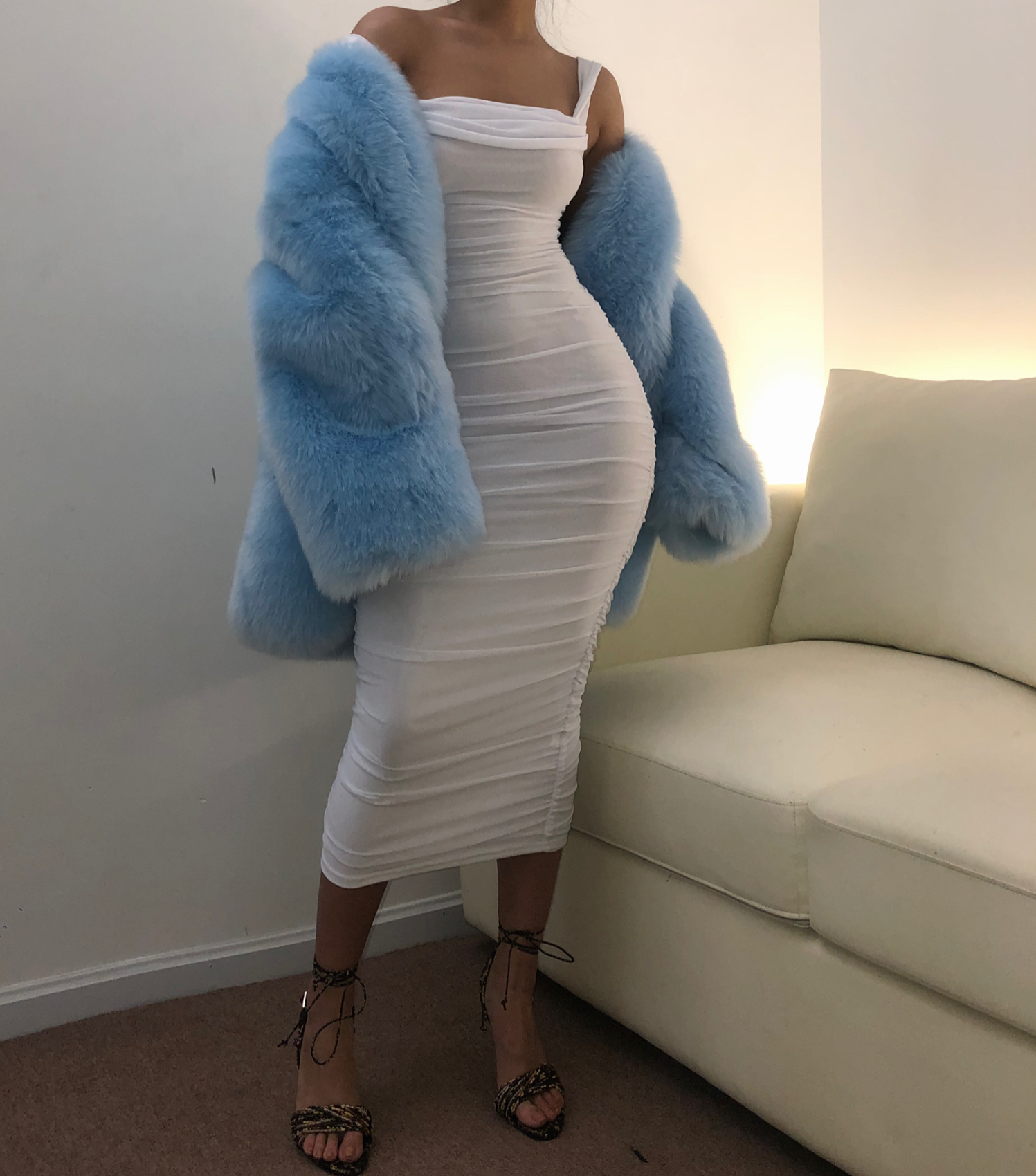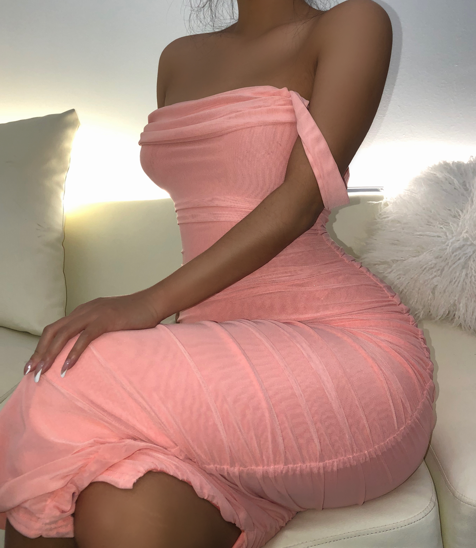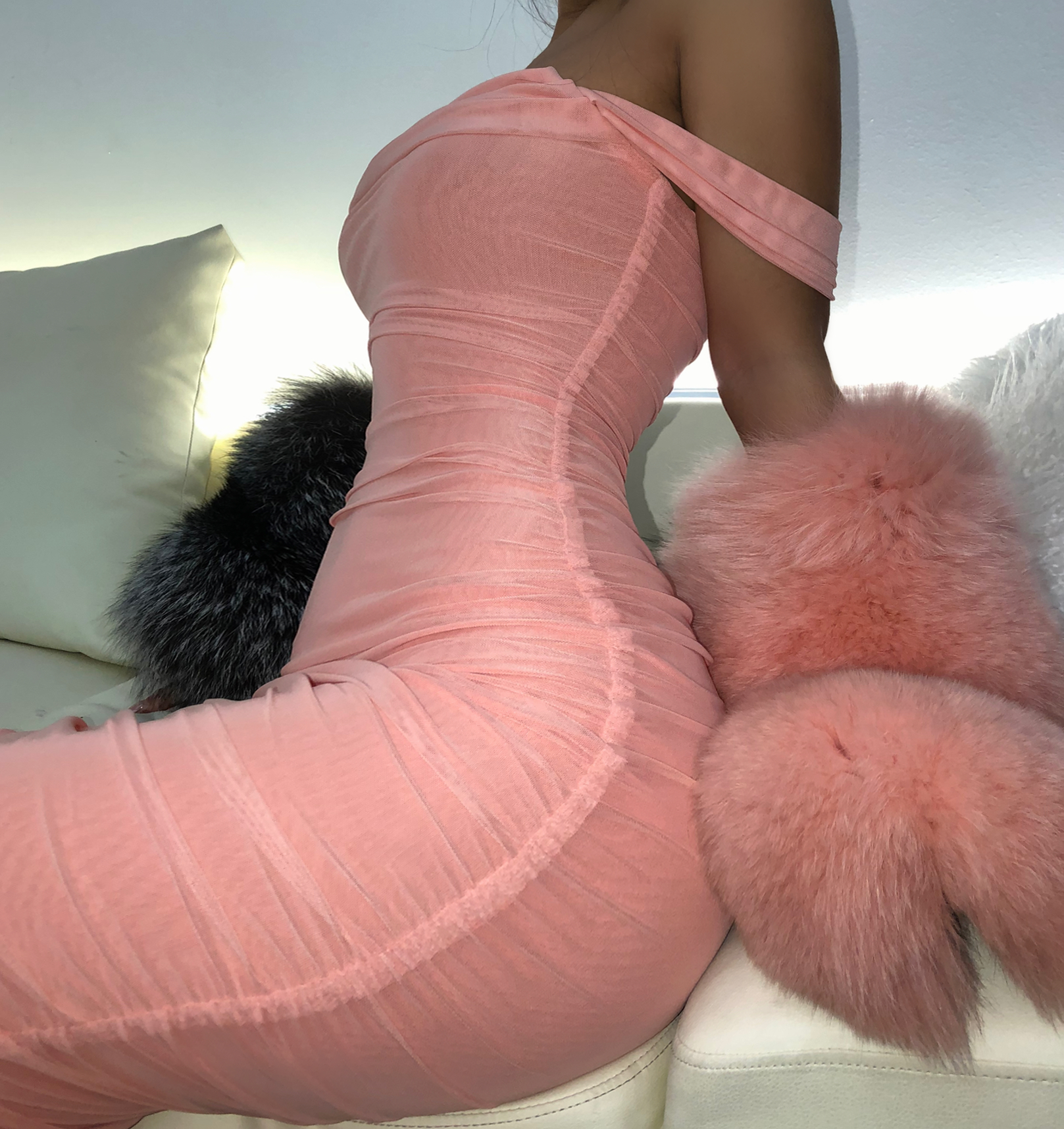 SYNEZS新款歐美性感網紗褶皺修身卡戴珊同款連衣裙禮服ins