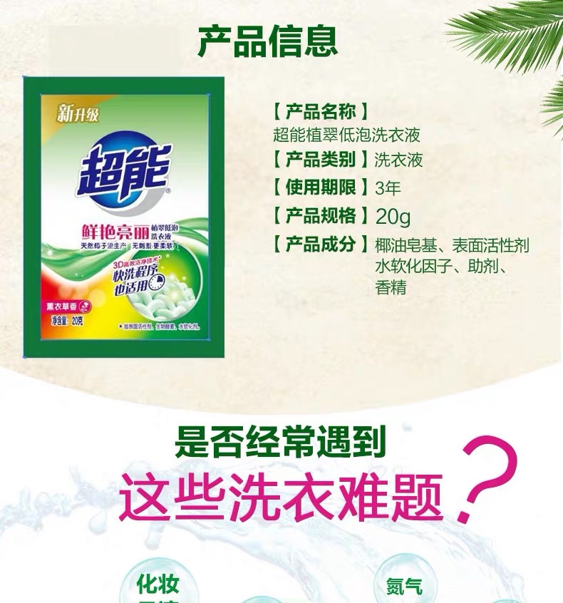 超能洗衣液20g旅行袋裝酒店賓館整箱批1次性小樣品家用家庭實惠裝