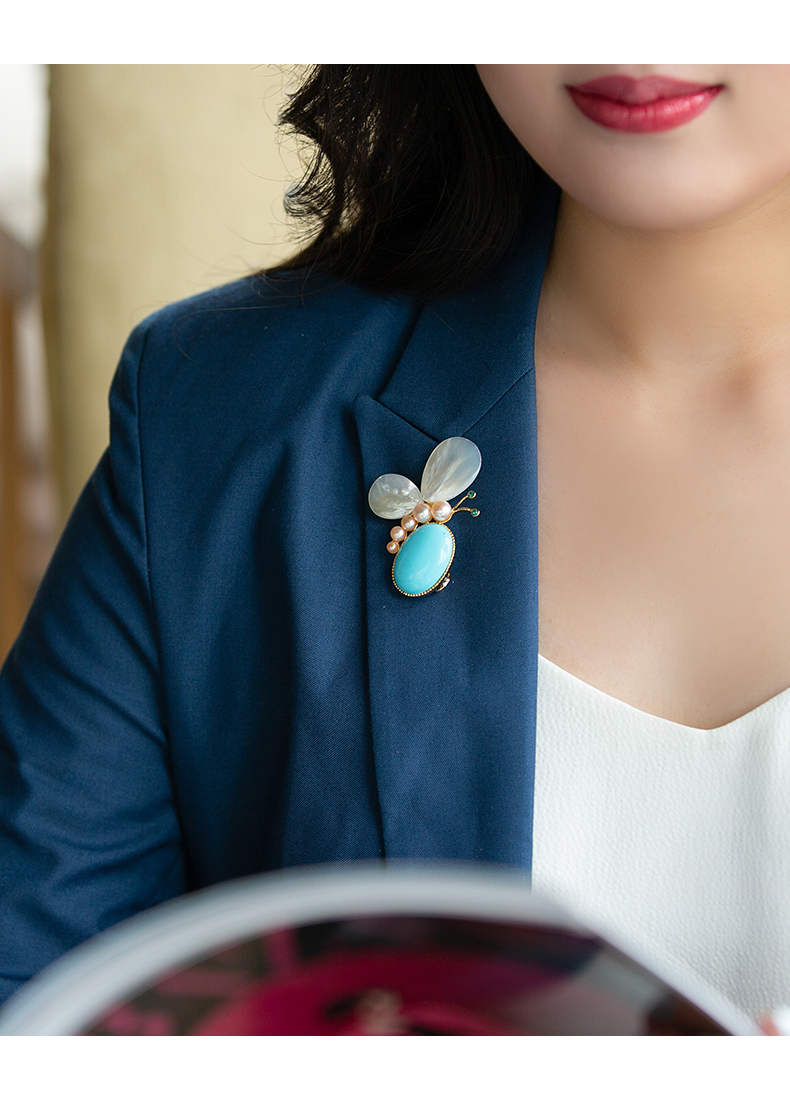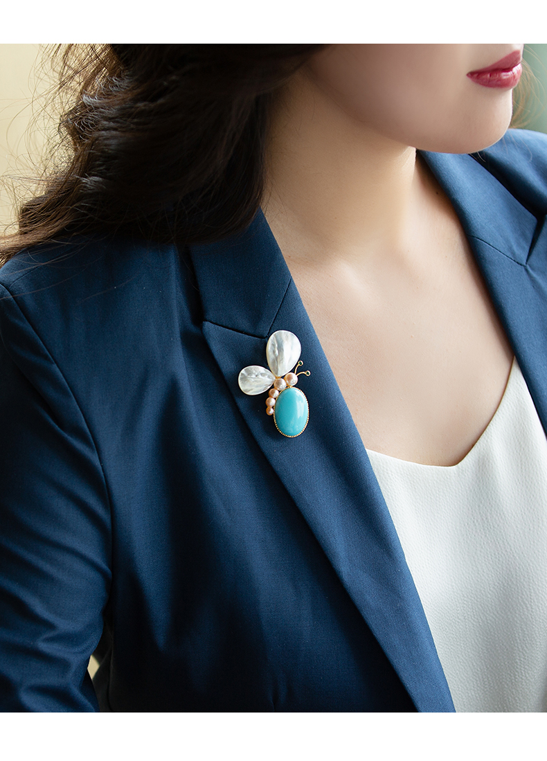 天然珍珠貝殼松石胸針胸花女別針配飾高檔奢華氣質復古西裝風衣