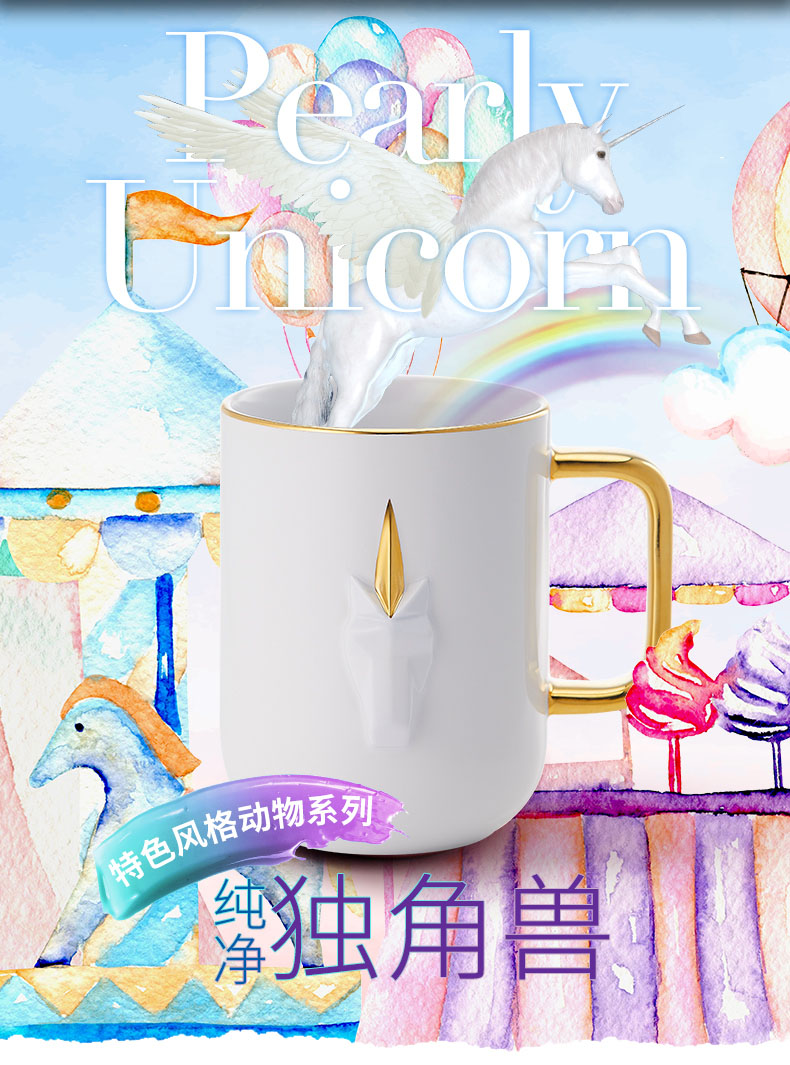GAIIA 原創高浮雕獨角獸咖啡杯馬克杯真金藝術杯子送情侶閨蜜禮物