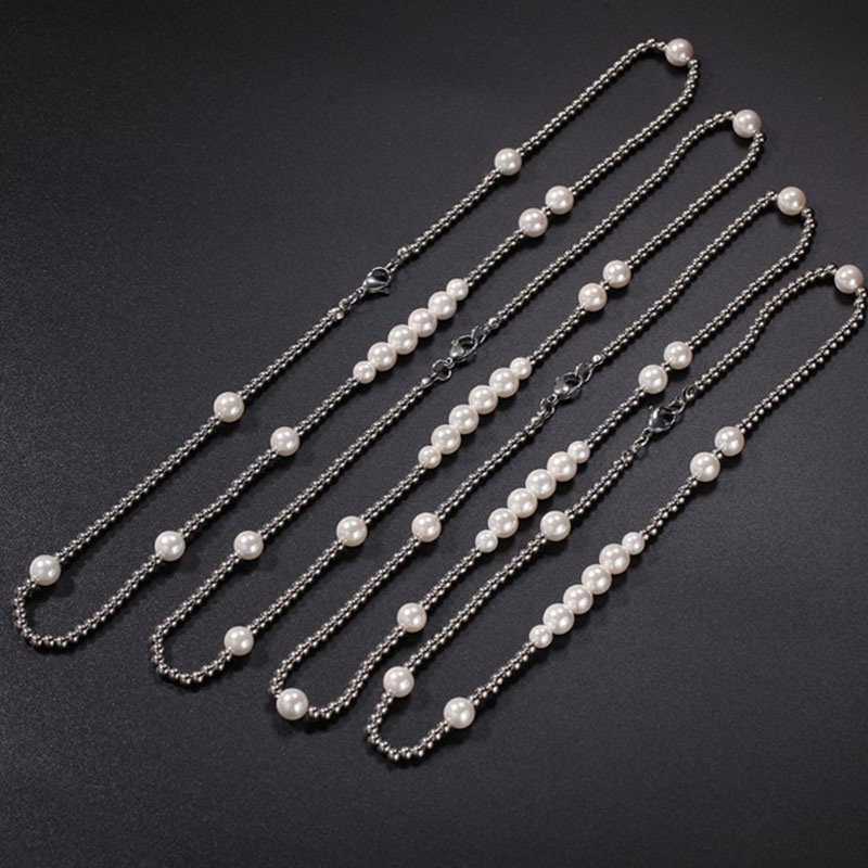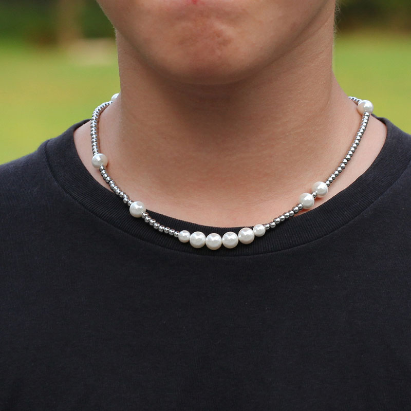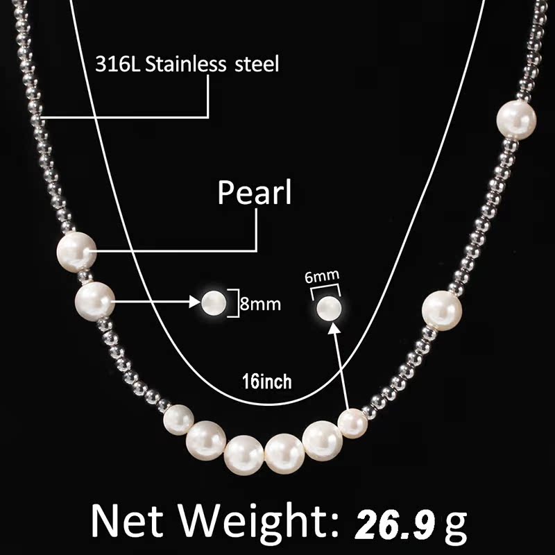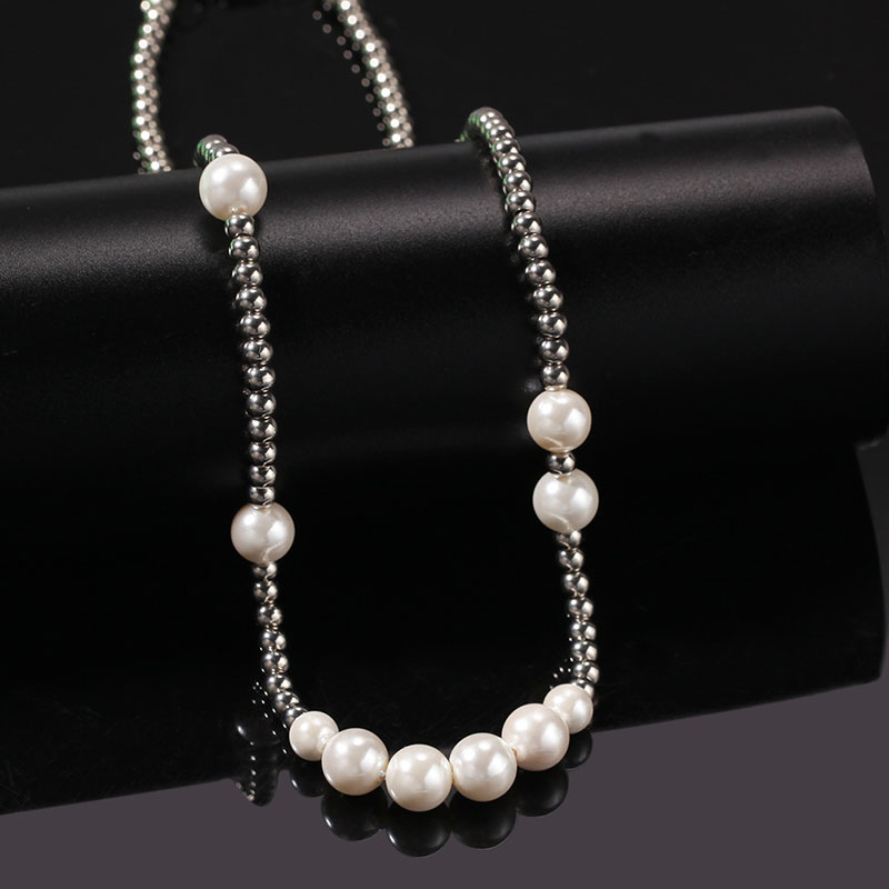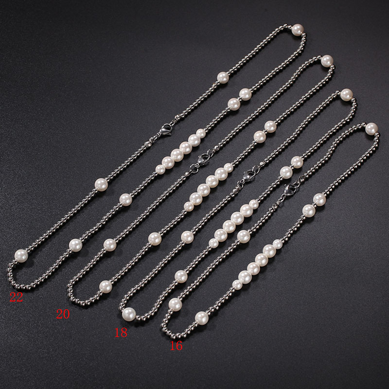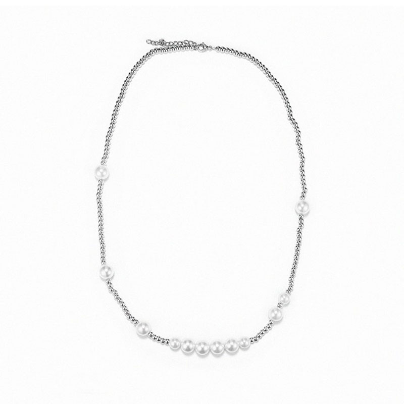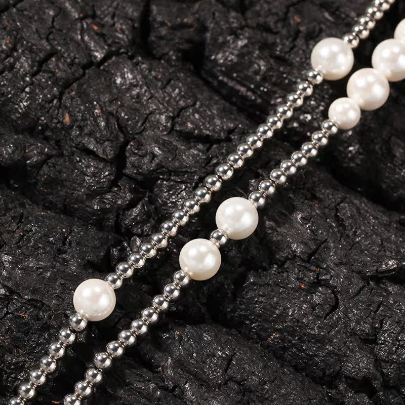 歐美時尚混搭珍珠不銹鋼球項鏈街頭嘻哈男女百搭鎖骨鏈潮人配飾