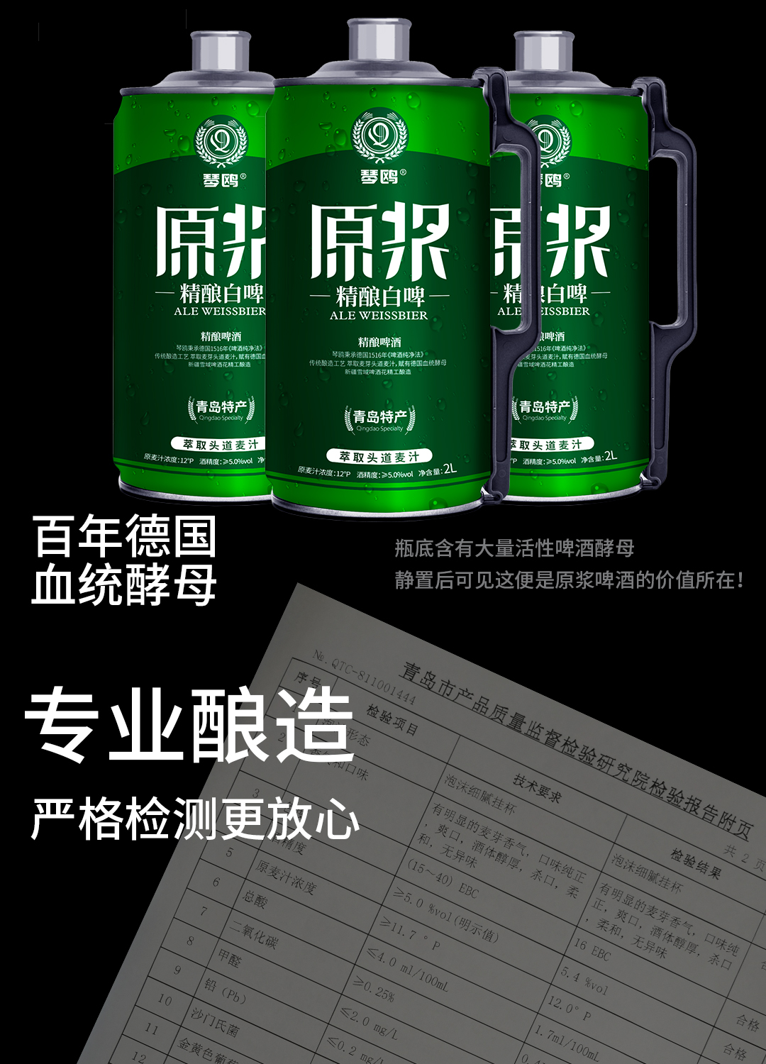 青島琴鷗精釀原漿啤酒全麥扎啤山東特產2L*2大桶裝啤酒整箱禮盒裝