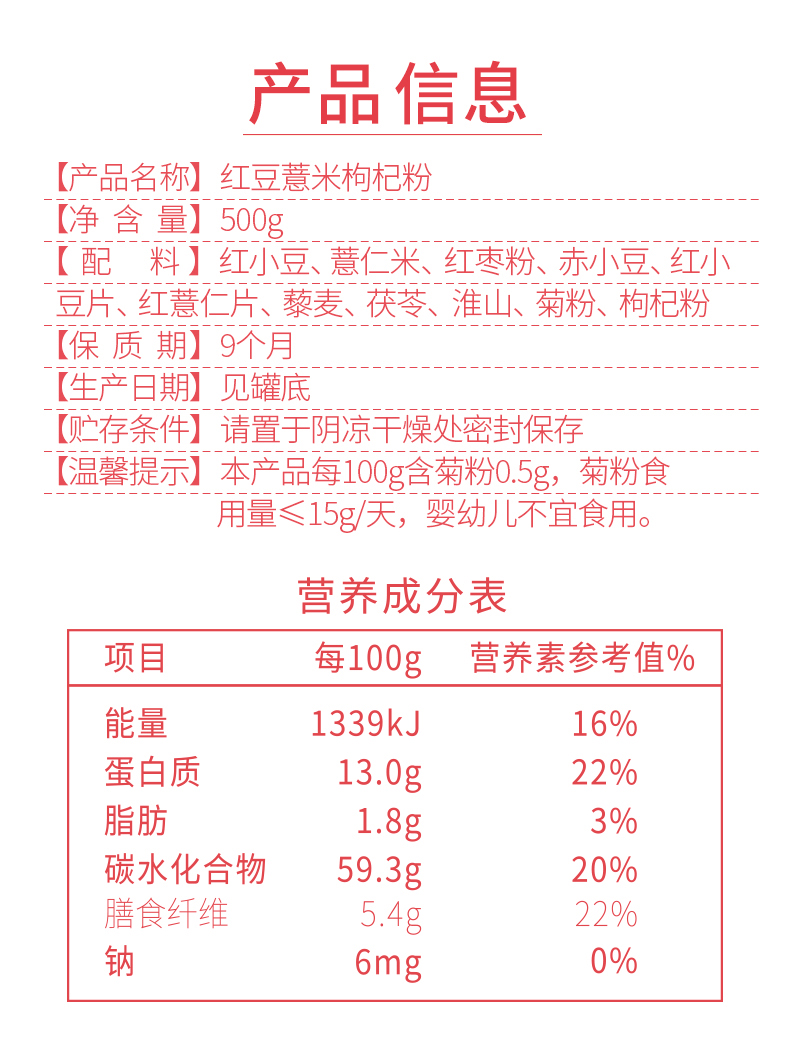 燕之坊紅豆薏仁粉薏米枸杞粉500g五谷雜糧代餐粉沖飲沖泡早餐食品