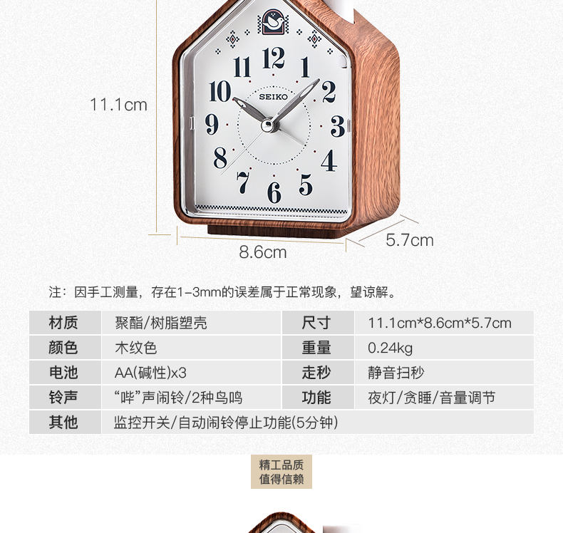 正品seiko日本精工超靜音鈴聲鬧鐘