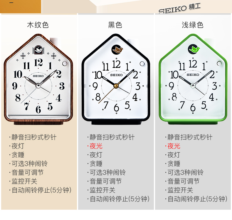 正品日本SEIKO精工鬧鐘 可調音量靜音可愛兒童學生布谷鳥鬧鈴鬧表