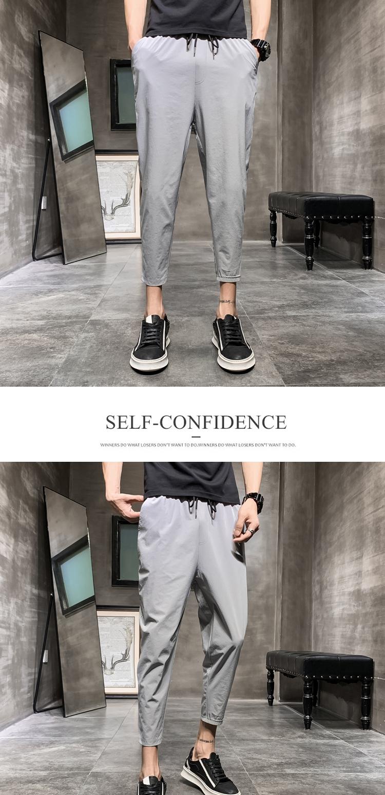 痞帥男士九分休閑褲修身小腳運動精神小伙黑武士彈力夏季束腳褲