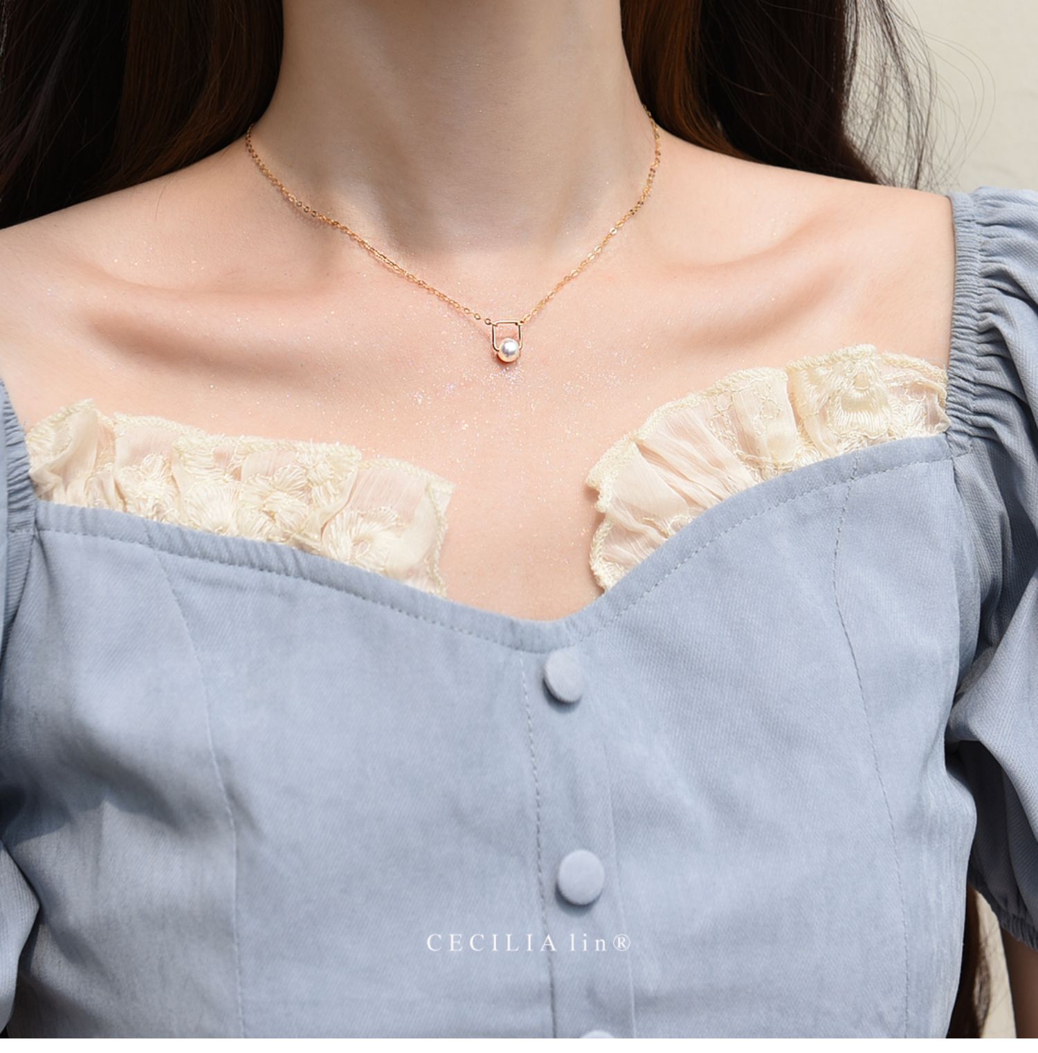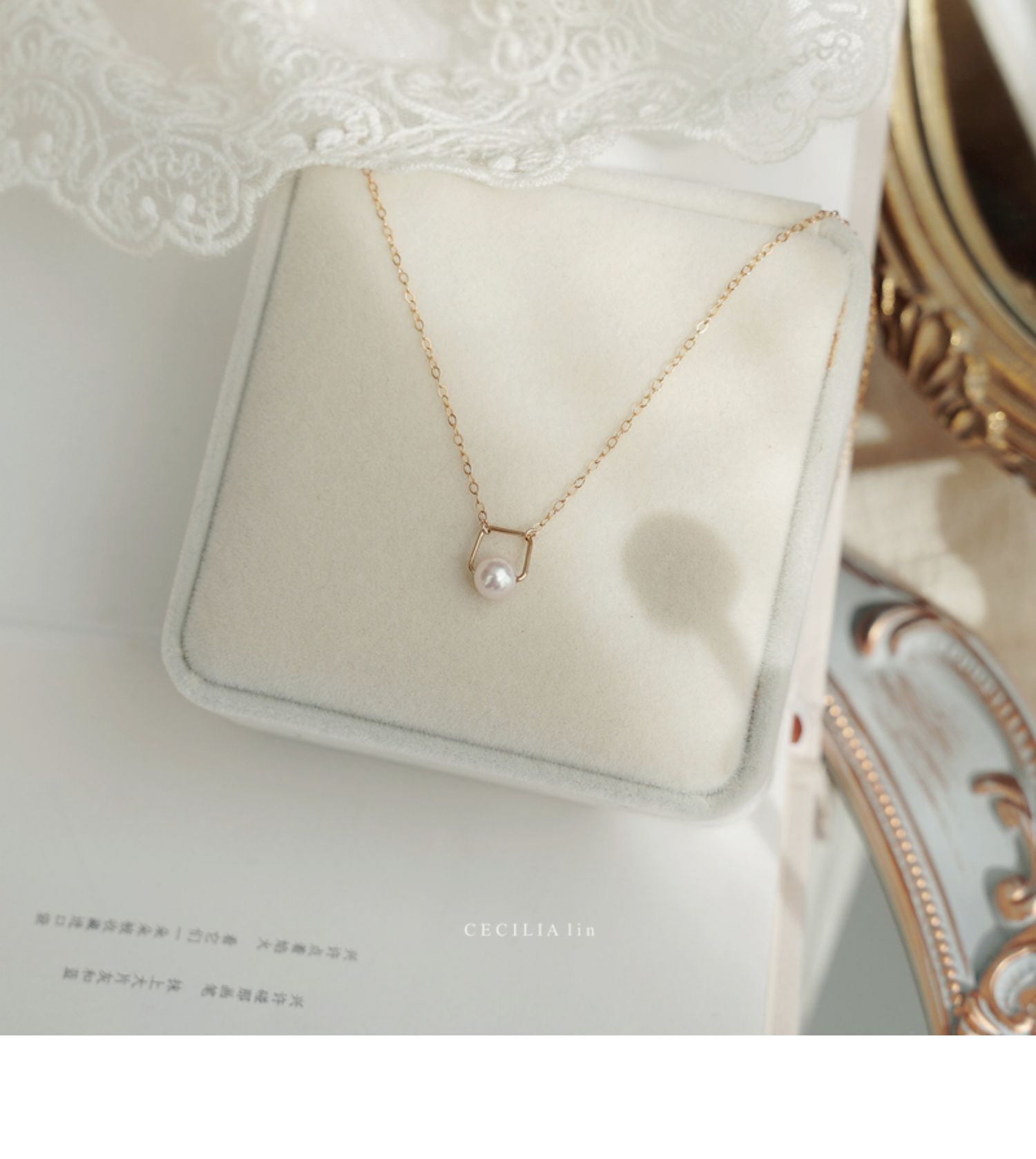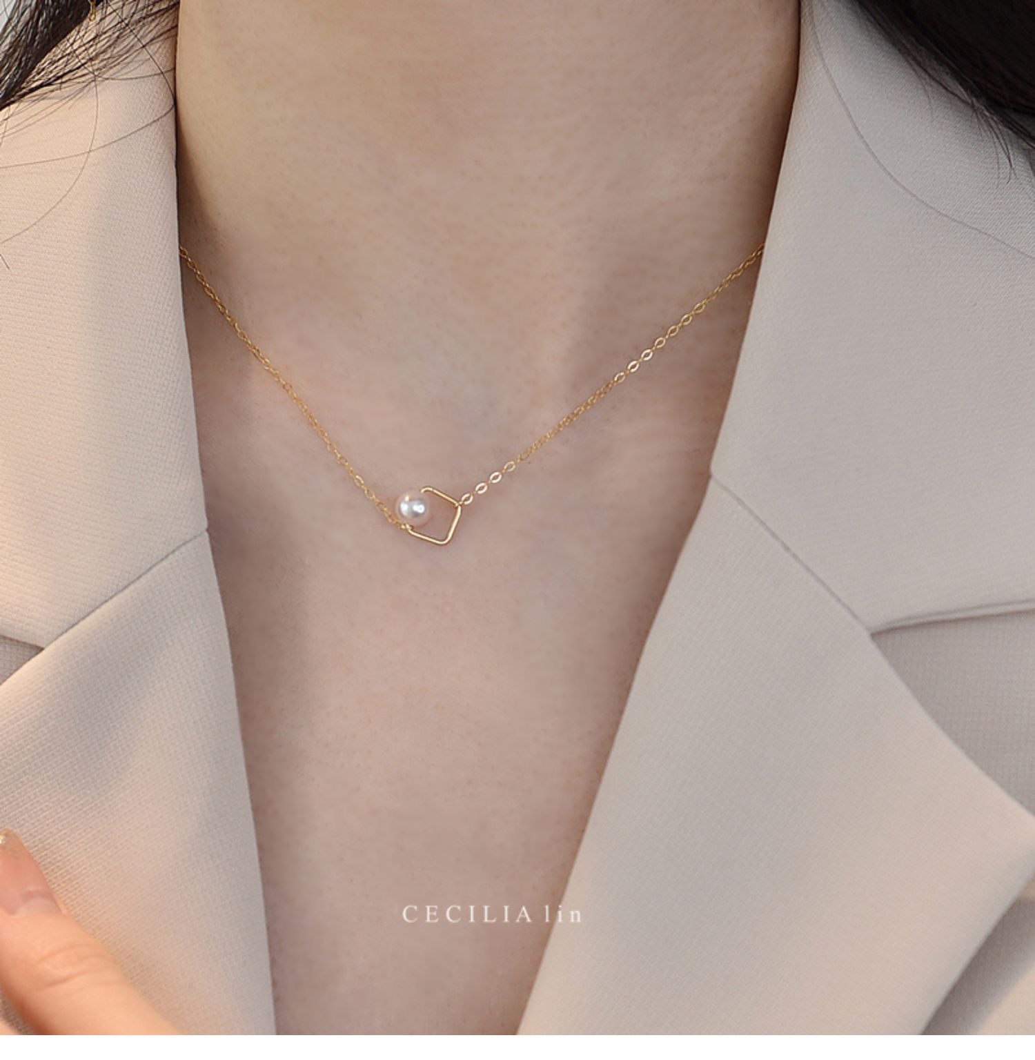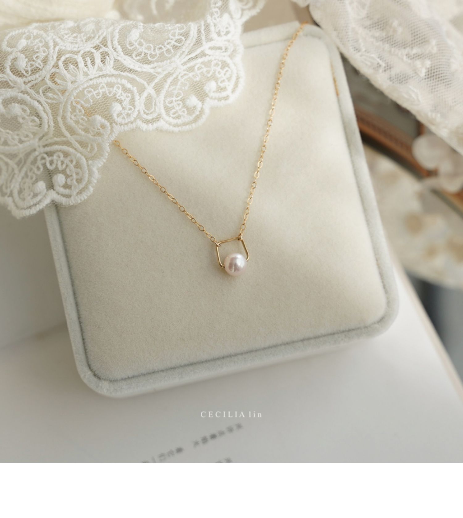 洗澡不用摘 CECILIA原創方圓簡約氣質14K包金天然珍珠項鏈鎖骨鏈