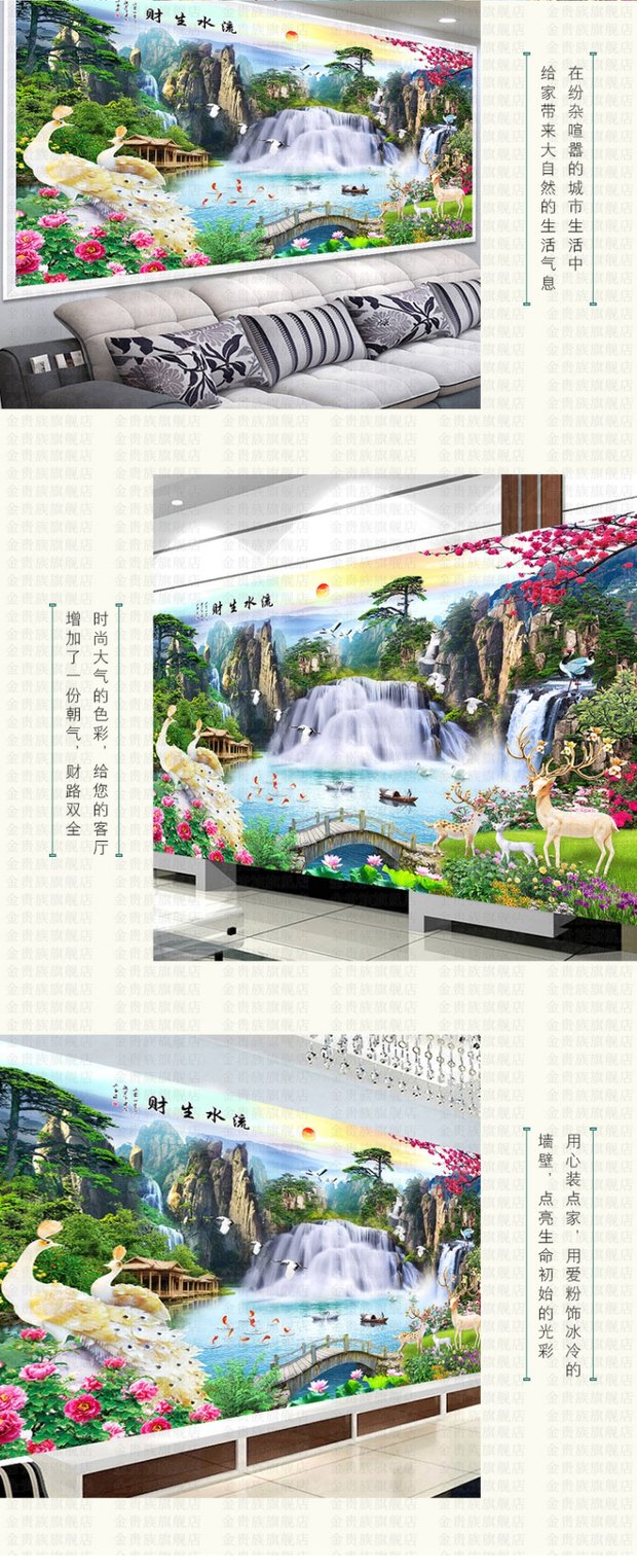 流水生財十字繡2023新款手工線繡大幅2022客廳孔雀麋鹿風景山水畫