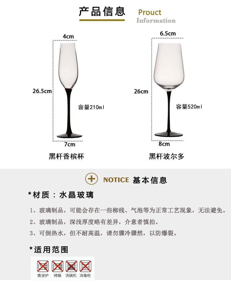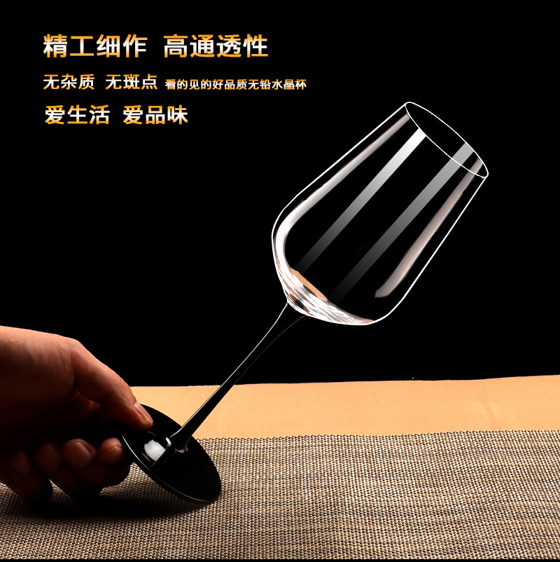 無鉛水晶玻璃杯2支黑底黑桿波爾多紅酒杯香檳杯高腳杯子酒吧小眾