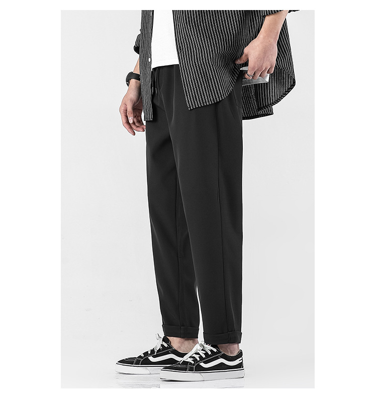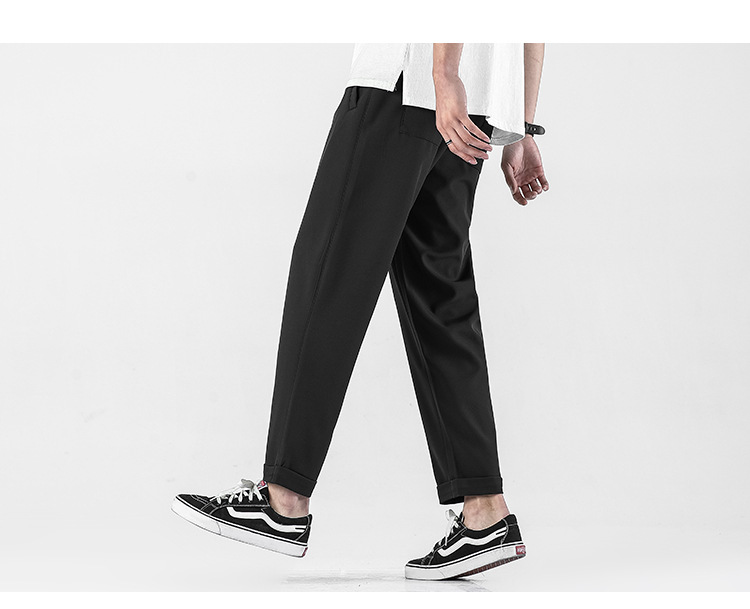 夏季冰絲九分褲子男士彈力薄款直筒褲速干透氣潮牌運動小腳休閑褲