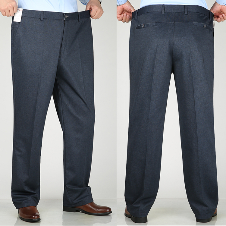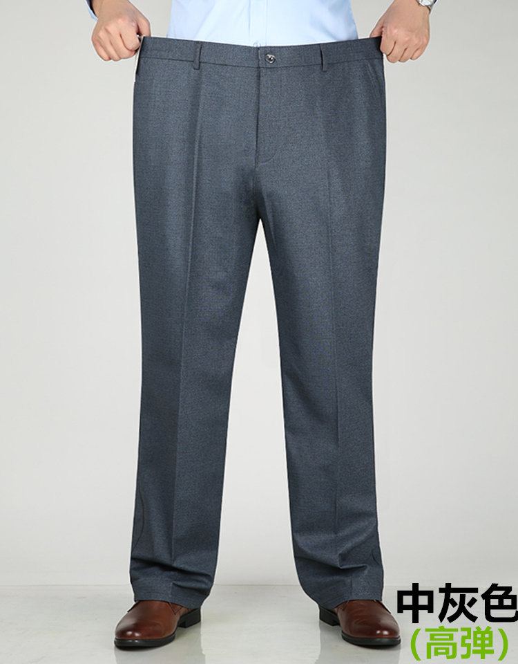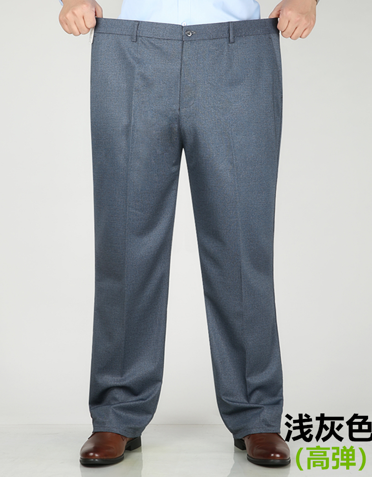 薄款加肥加大碼男褲高腰深襠寬松肥佬中老年高彈力商務休閑長褲子