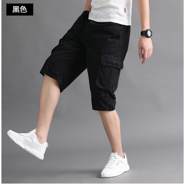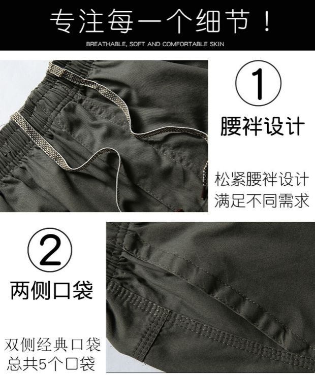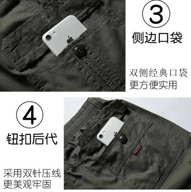男士七分褲夏裝純棉中年中褲休閑寬松運動中老年爸爸工裝大碼短褲