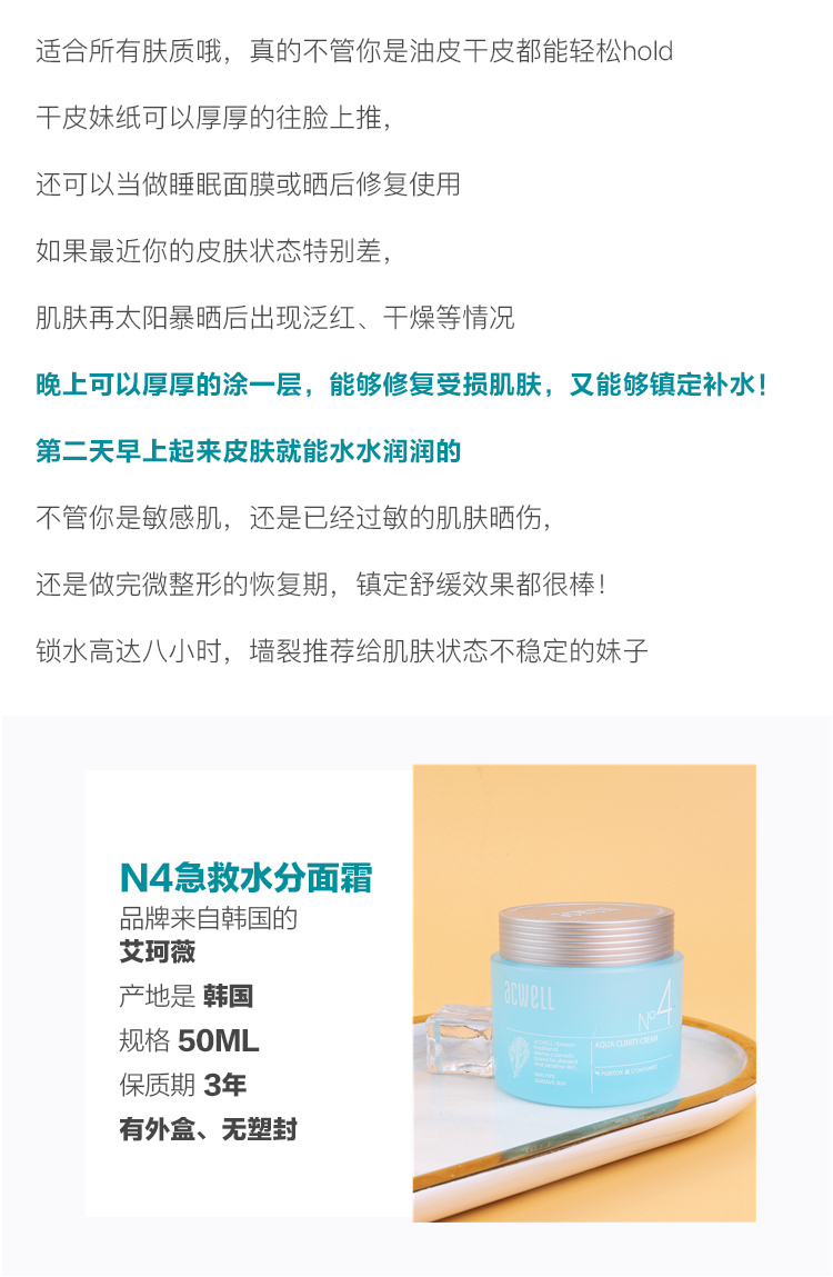 艾珂薇n4女acwell換季敏感肌保濕霜