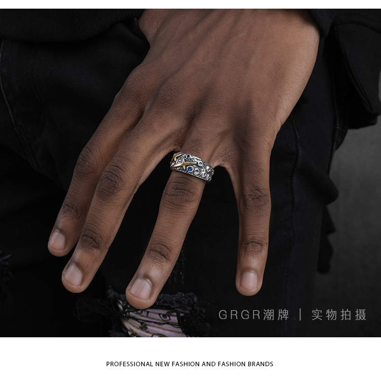 GRGR潮牌正品S925純銀星空藍鋯石戒指男女潮人個性泰銀單身首飾
