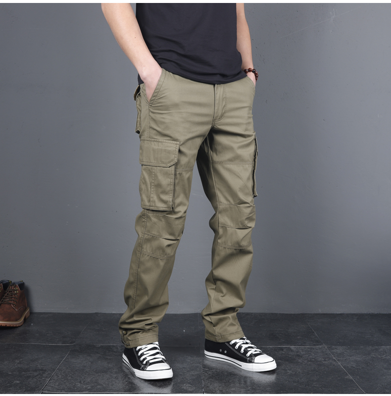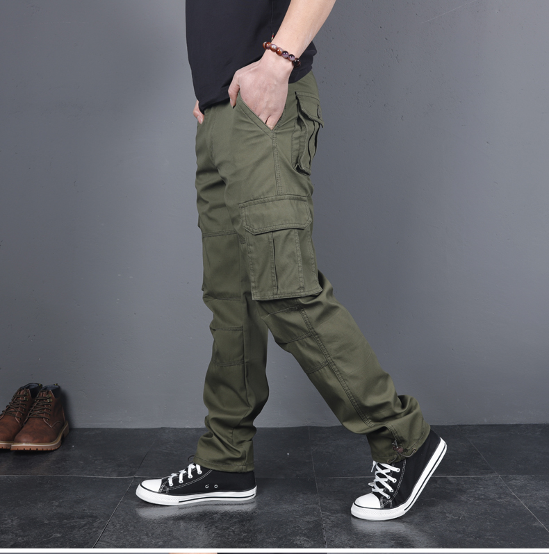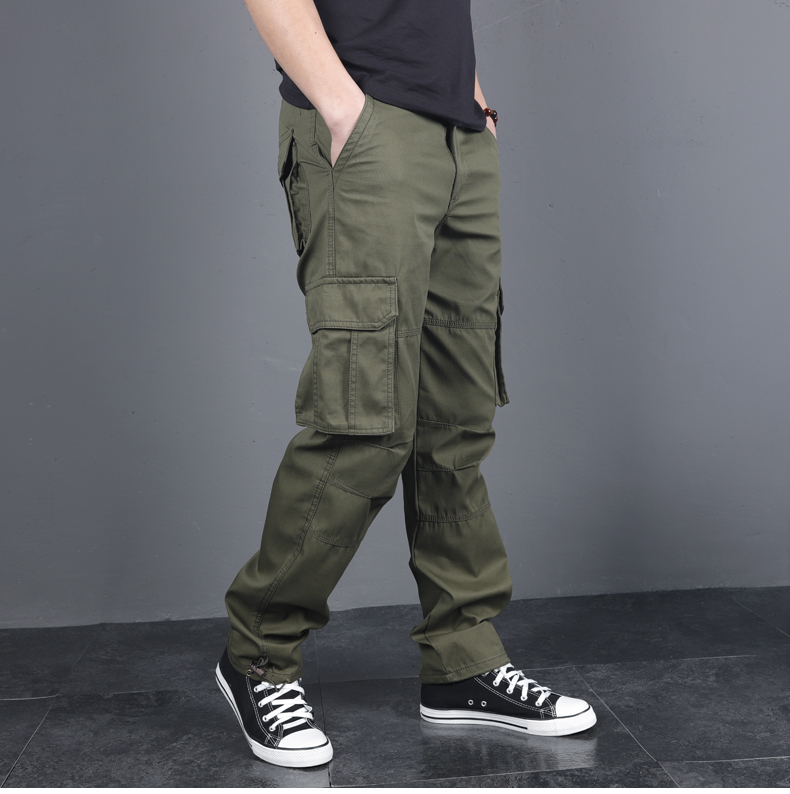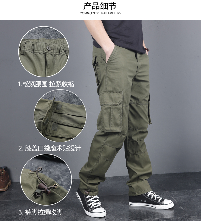 春秋男直筒寬松純棉多袋戰術工裝褲