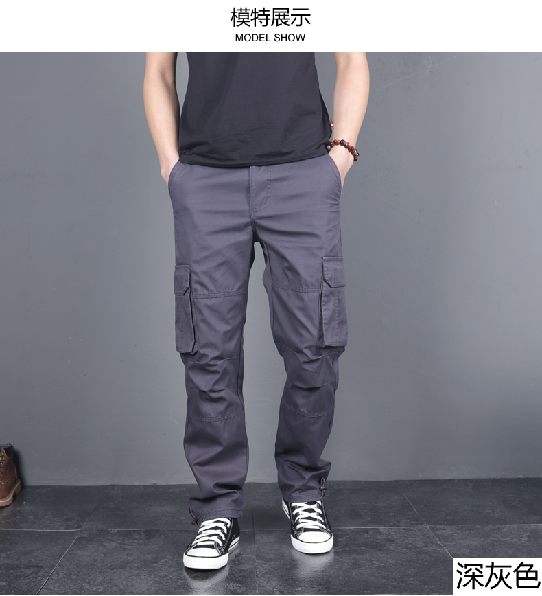 多口袋春秋款男寬松直筒戶外工裝褲