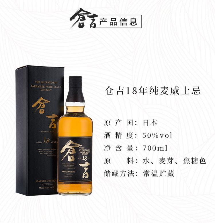 倉吉18年純麥威士忌日威進口洋酒老宋的微醺23點正品行貨