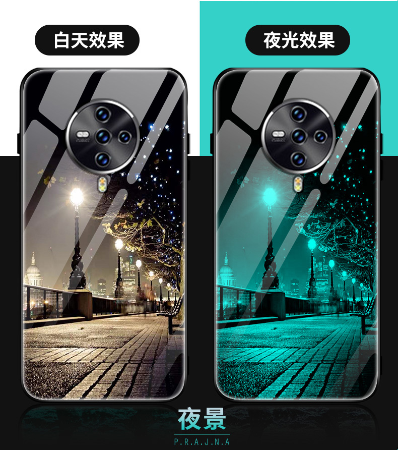 夜光玻璃適用榮耀X50手機殼ALI-AN00硅膠軟邊硬殼5G保護套防摔全包鏡頭華為Honor×50男女情侶溶藥 x五十曲屏