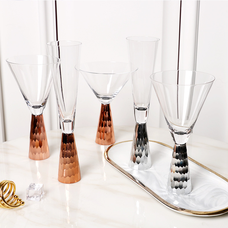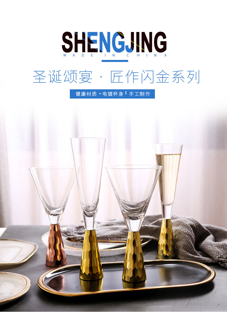 輕奢電鍍金色紅酒杯高腳杯金色底香檳杯現代西餐酒具樣板餐具擺臺