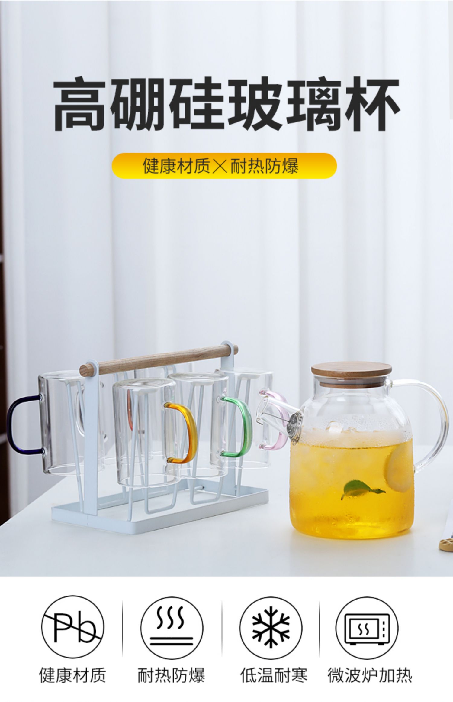 玻璃杯家用帶把耐熱喝水杯子套裝加厚大容量牛奶杯透明泡綠茶杯架