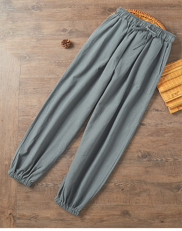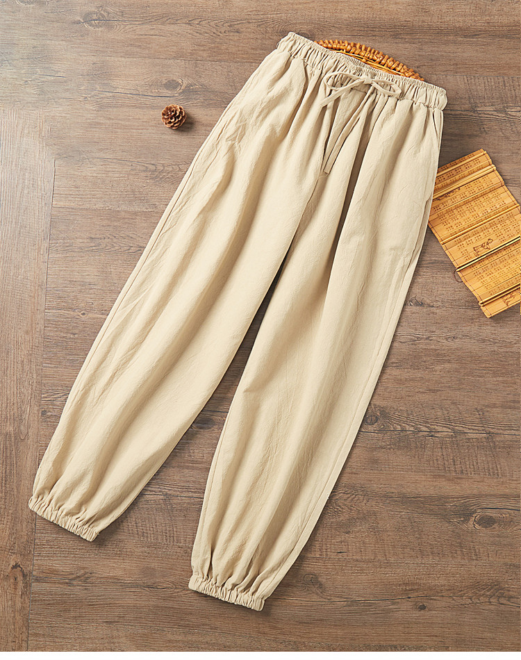 亞麻褲男夏季束腳燈籠褲運動褲子
